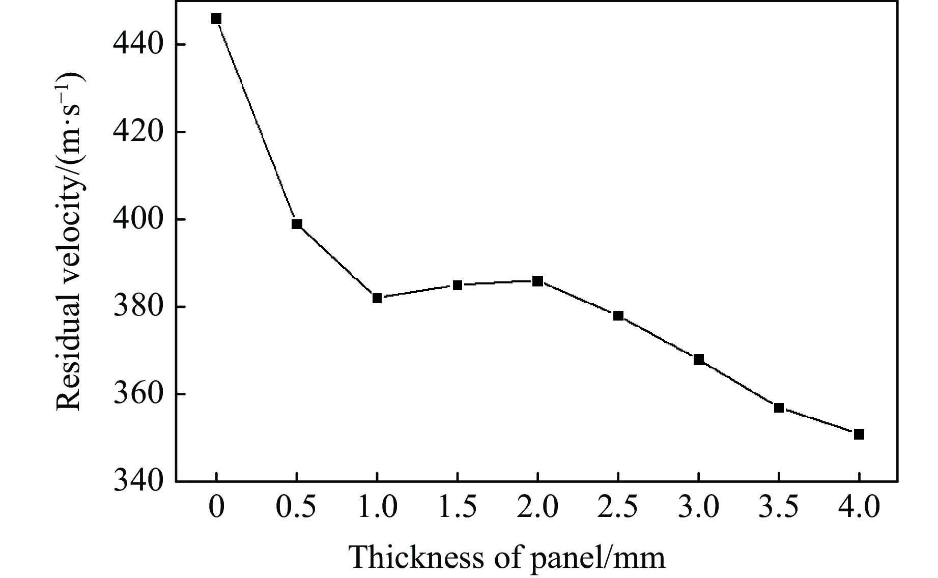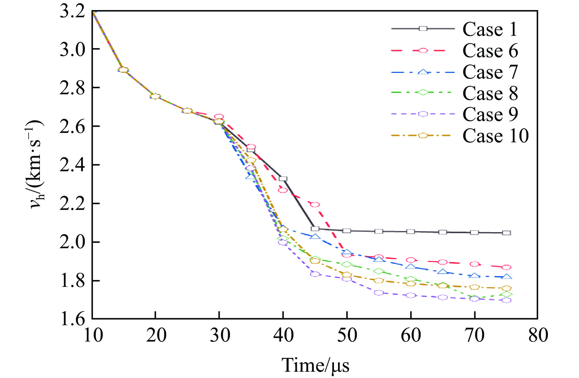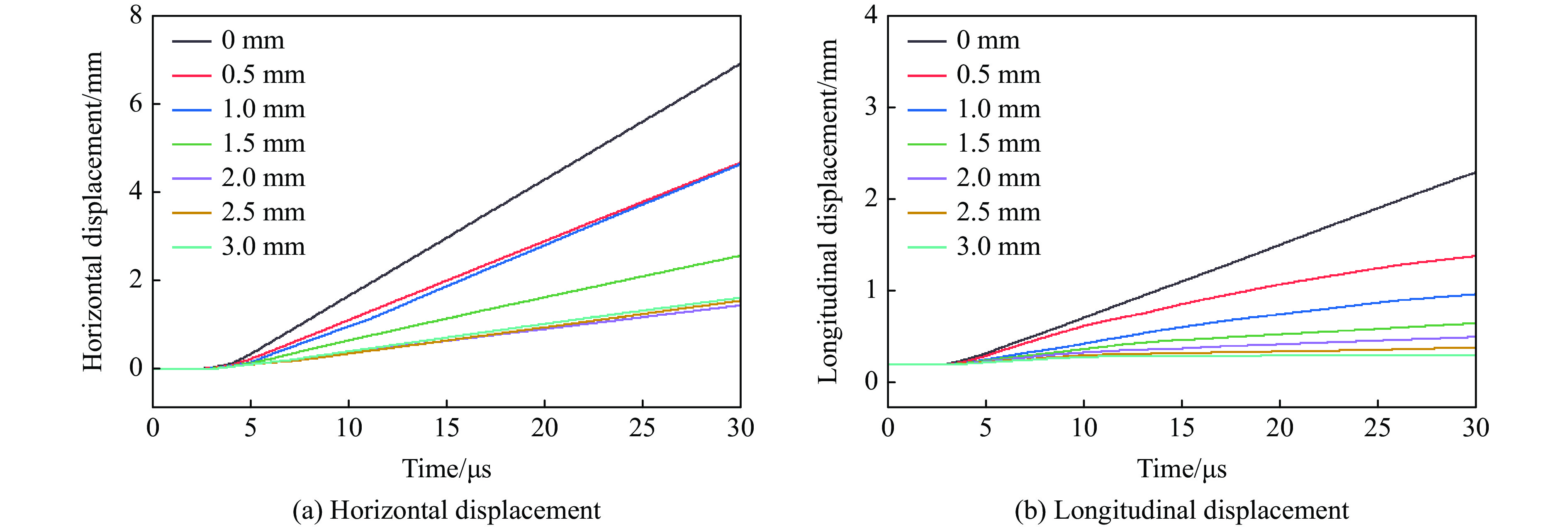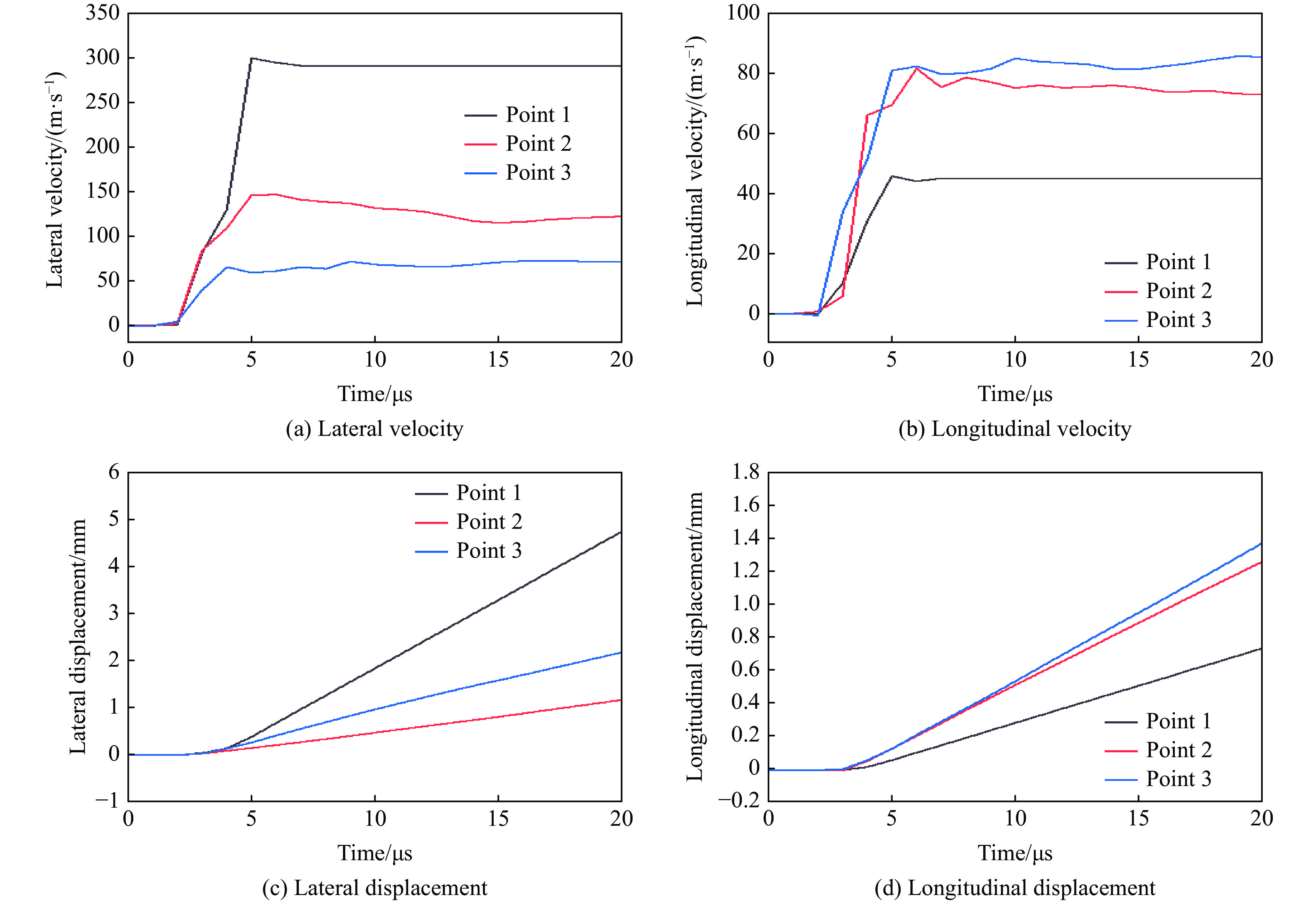 为探究隔板在小口径聚能装药中的作用,开展隔板参数与中心通孔药型罩匹配对爆轰产物泄露以及射流侵彻性能的影响规律研究。基于爆轰波正规斜反射理论,推导了药型罩表面不同位置处爆轰波初始入射角和所受压力与隔板参数之间的定量关系式。采用LS-DYNA软件,系统分析了隔板直径、高度对射流成型和侵彻性能的影响规律。结果表明:在通孔药型罩中添加隔板能有效提高药型罩上的压垮压力,抑制爆轰产物泄漏,提高能量利用效率和射流侵彻性能;射流侵彻能力随隔板直径增大呈现先增后减的变化趋势;隔板高度对射流性能的影响呈多极值响应;当隔板直径为6 mm且隔板高度为4 mm时,对45钢靶的侵彻深度达到较大值,为158.17 mm,较无隔板结构,提升了17.21%。研究结果可为小口径聚能战斗部设计提供参考。