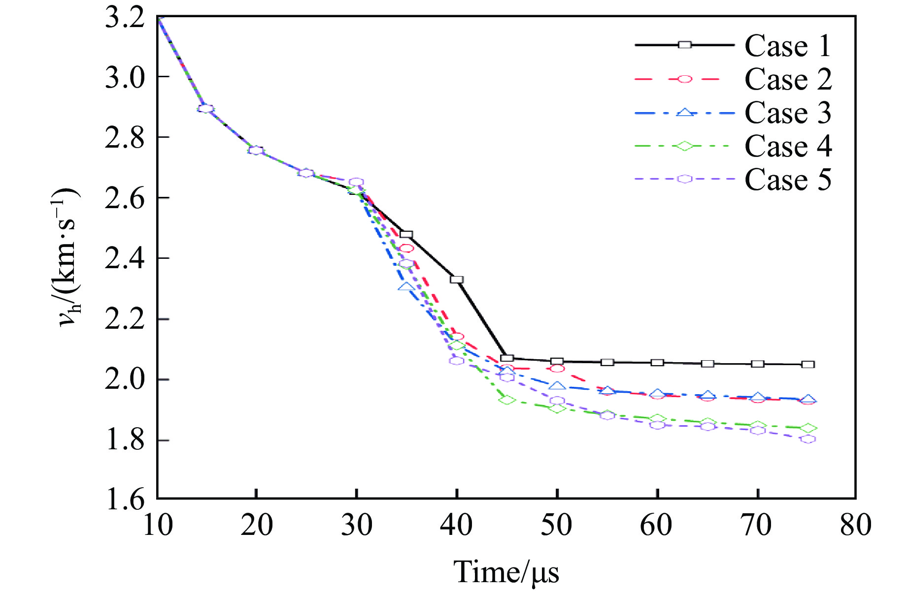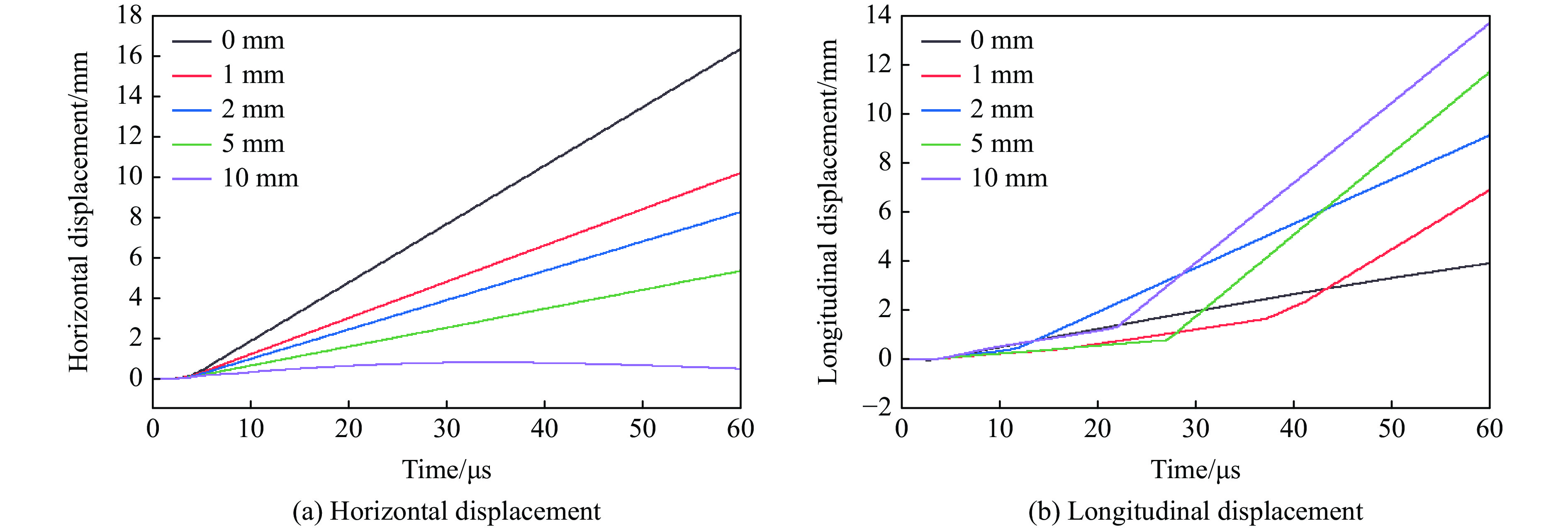 为提高聚能战斗部对含水复合结构的侵彻能力,设计了一种截锥-球缺组合罩,并通过数值仿真探究其在水介质中的射流成型运动规律和对含水复合结构的毁伤性能。研究发现:在侵彻含水复合结构的过程中,截锥-球缺组合罩相比于亚半球-球缺组合罩和U形-球缺组合罩,形成的射流长度更大,射流头部速度更高;在水介质中形成的空腔通道、水介质径向扩展速度均最小;击穿后效靶板后的射流剩余动能以及射流剩余速度最大。利用仿真技术探究截锥-球缺组合罩中截锥罩的锥角、高度、侧壁壁厚、顶壁壁厚等结构参数对射流形态及侵彻性能的影响,并对其进行正交优化试验设计,结果表明:这些结构参数对射流侵彻性能影响由大到小依次为截锥罩的锥角、高度、侧壁壁厚、顶壁壁厚;当锥角为26°、高度为22 mm、侧壁壁厚为4.0 mm、顶壁壁厚为3.2 mm时,截锥-球缺组合罩的侵彻性能较优,穿透后效靶板时的射流剩余动能为136.2 kJ。该研究对聚能型鱼雷战斗部的设计以及提高鱼雷战斗部毁伤威力具有一定的参考价值。
