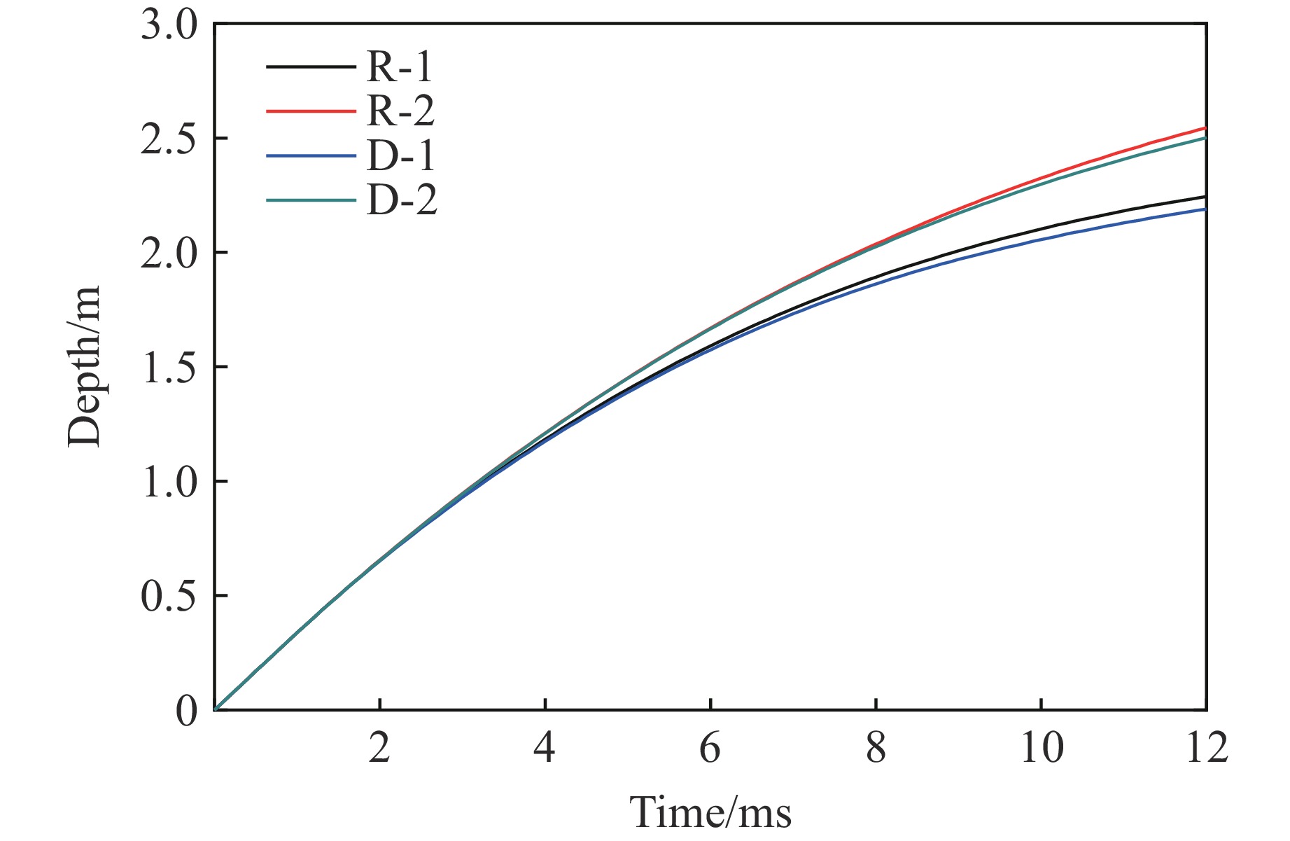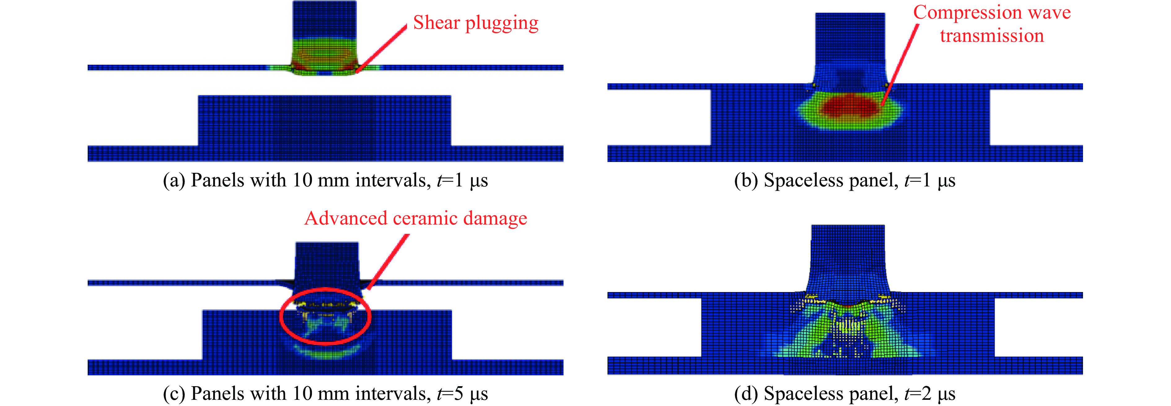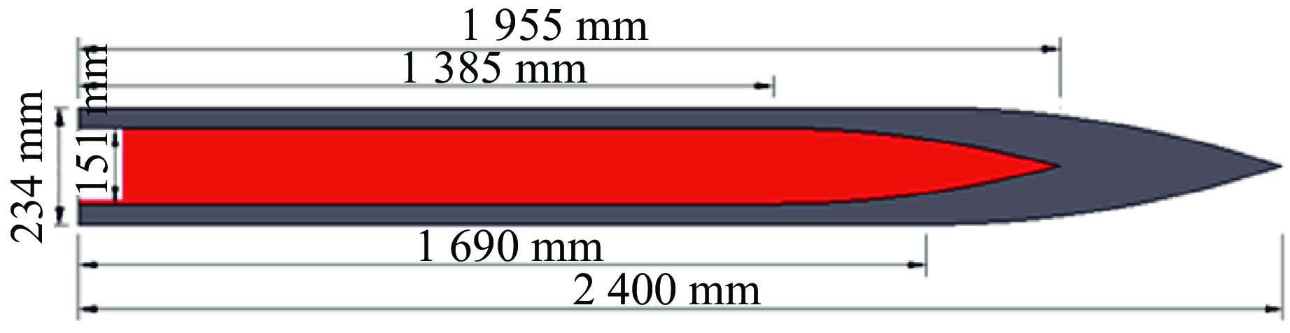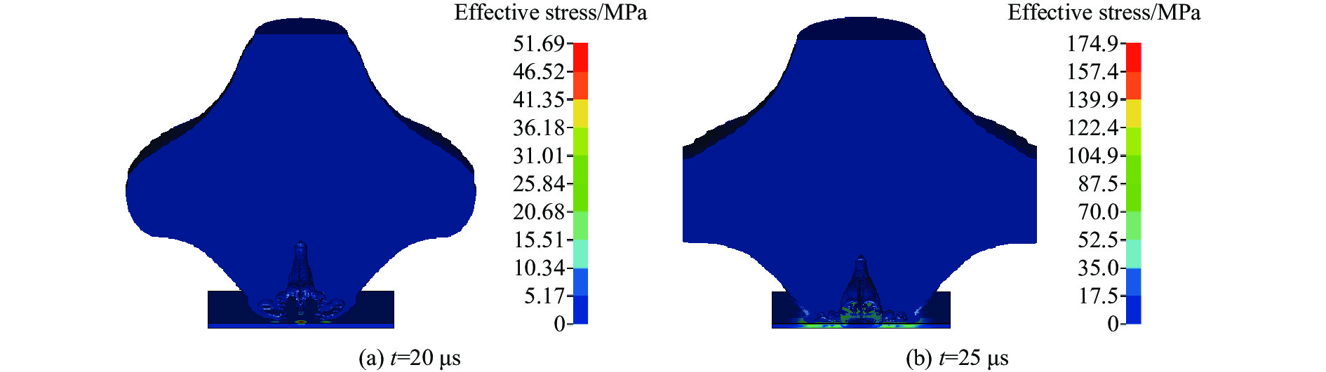 为了研究鱼雷制导头段结构对水下聚能战斗部毁伤威力的影响,采用AUTODYN有限元分析软件,对聚能侵彻体受不同模拟头段结构影响下的毁伤性能进行了数值仿真,分析了不同模拟头段结构下冲击波绕射、靶后载荷传播和毁伤靶板的全过程。研究表明:侵彻体头部速度和后效靶扩孔半径随模拟头段总长度和模拟头段层数增大而整体呈上升趋势;在一定范围内,增加模拟头段层数可以有效地优化爆炸成型弹丸(explosively formed projectile,EFP)的成型形态,从而提升其后续侵彻能力;在不同模拟头段总长度条件下,存在一个最佳总长度使侵彻体保持较高头部速度的同时不发生颈缩断裂。