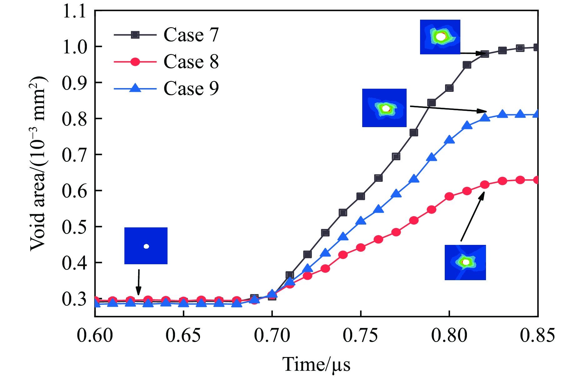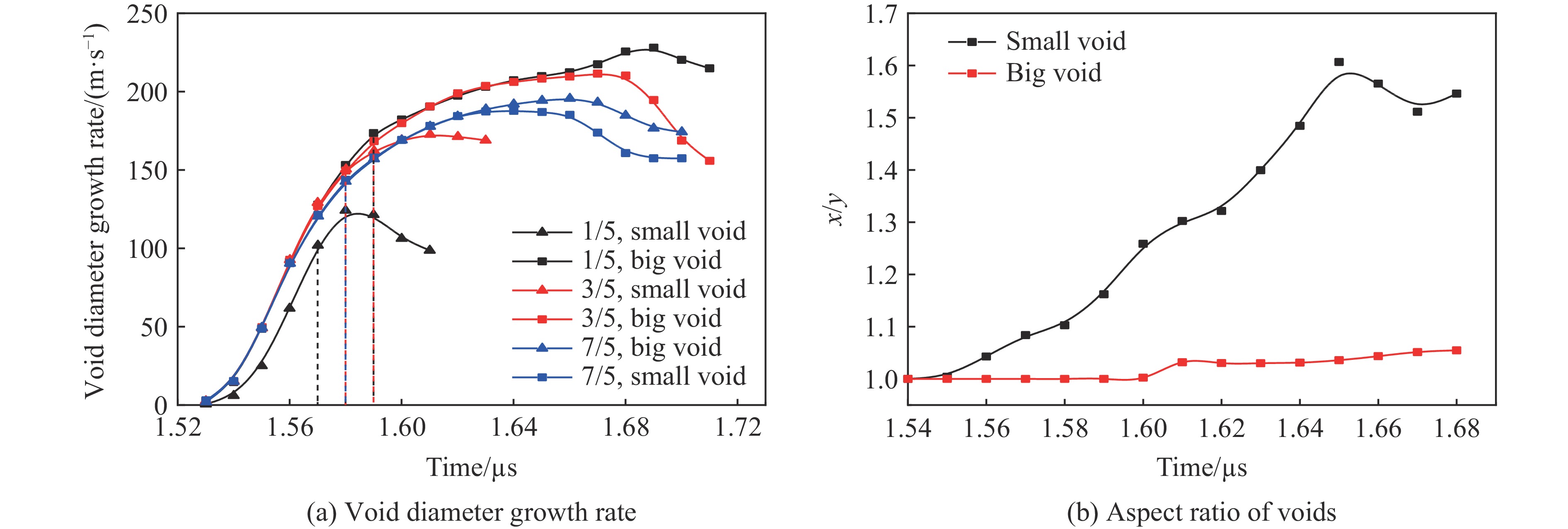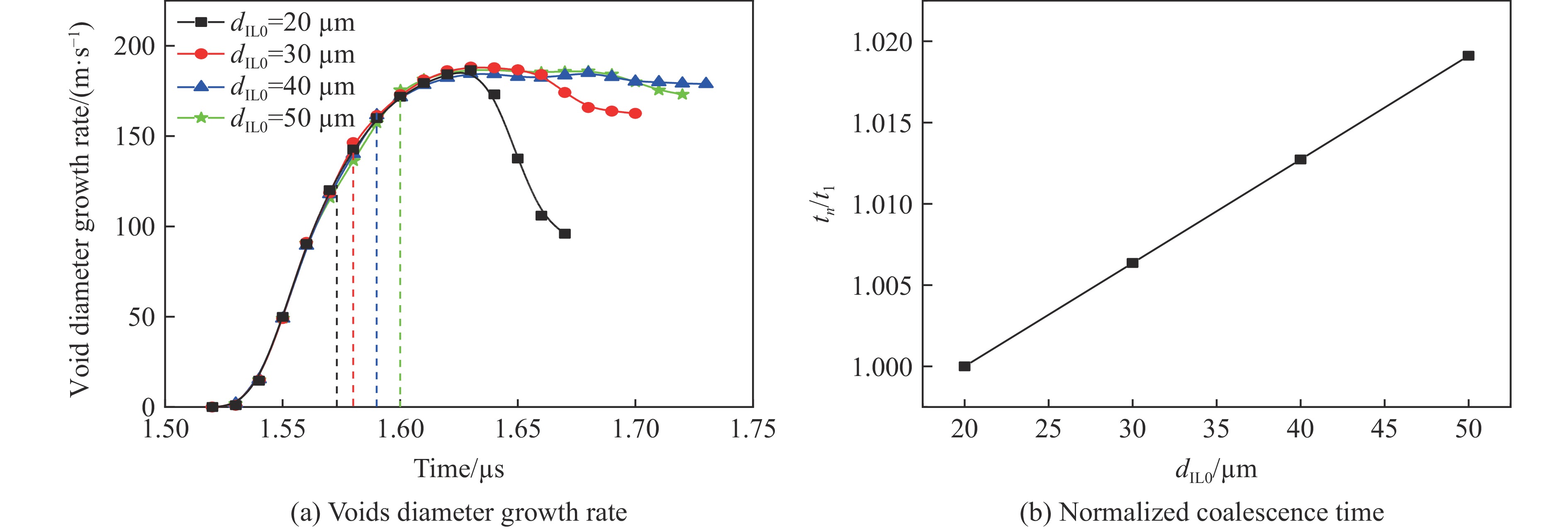 采用分子动力学方法,研究了含氦泡铜在两次稳态波加卸载作用下的微射流增长与损伤演化过程,对比了含氦泡与不含氦泡金属的损伤特征、激活应力阈值、微射流形态和速度分布以及不同区域氦泡的变形特征。结果表明:二次冲击后,氦泡膨胀的临界激活应力阈值低于孔洞形核的应力阈值,且与氦泡分布及氦泡数密度密切相关。低压首次冲击下,含氦泡金属比纯金属形成更显著的微射流;二次冲击下,氦泡使微射流更易断裂,且微射流头部最大速度更高,但微射流主体速度分布相当。二次冲击波对于已经经过首次冲击压缩、由于稀疏波作用发生轻微回弹但未恢复至初始状态的体氦泡几乎不起作用。二次冲击后,近表面已破裂飞出的氦泡壁也可能贴回气泡底部,使得部分氦原子被再次封存。二次冲击卸载后,被封存的氦泡会再次发生膨胀破裂,释放氦原子。在二次冲击作用下,氦泡塌缩机制与氦泡尺寸及冲击强度紧密关联。研究结果将为后续的辐照氦泡对金属微喷-微层裂耦合演化影响的跨尺度理论研究提供物理认识和理论依据。