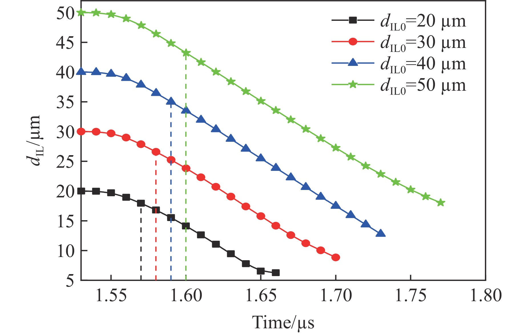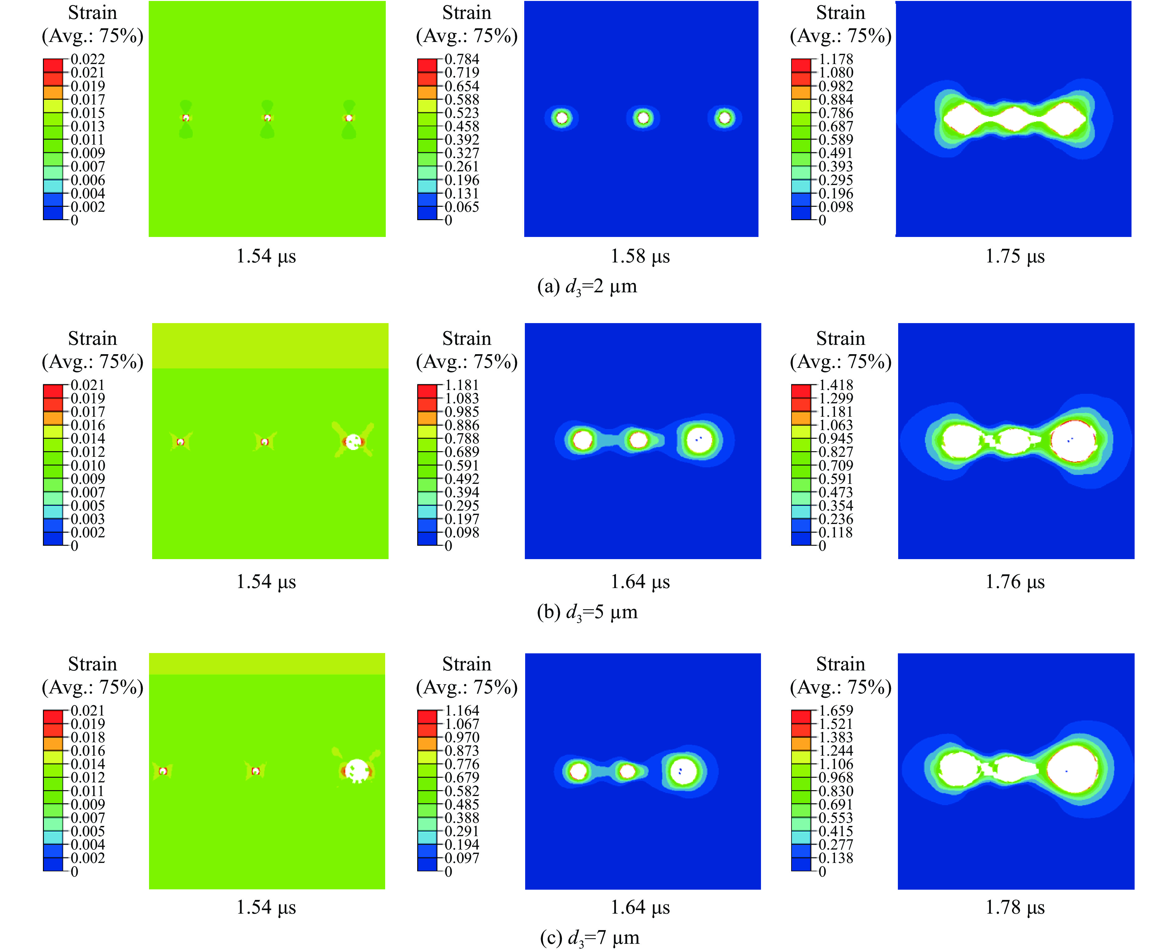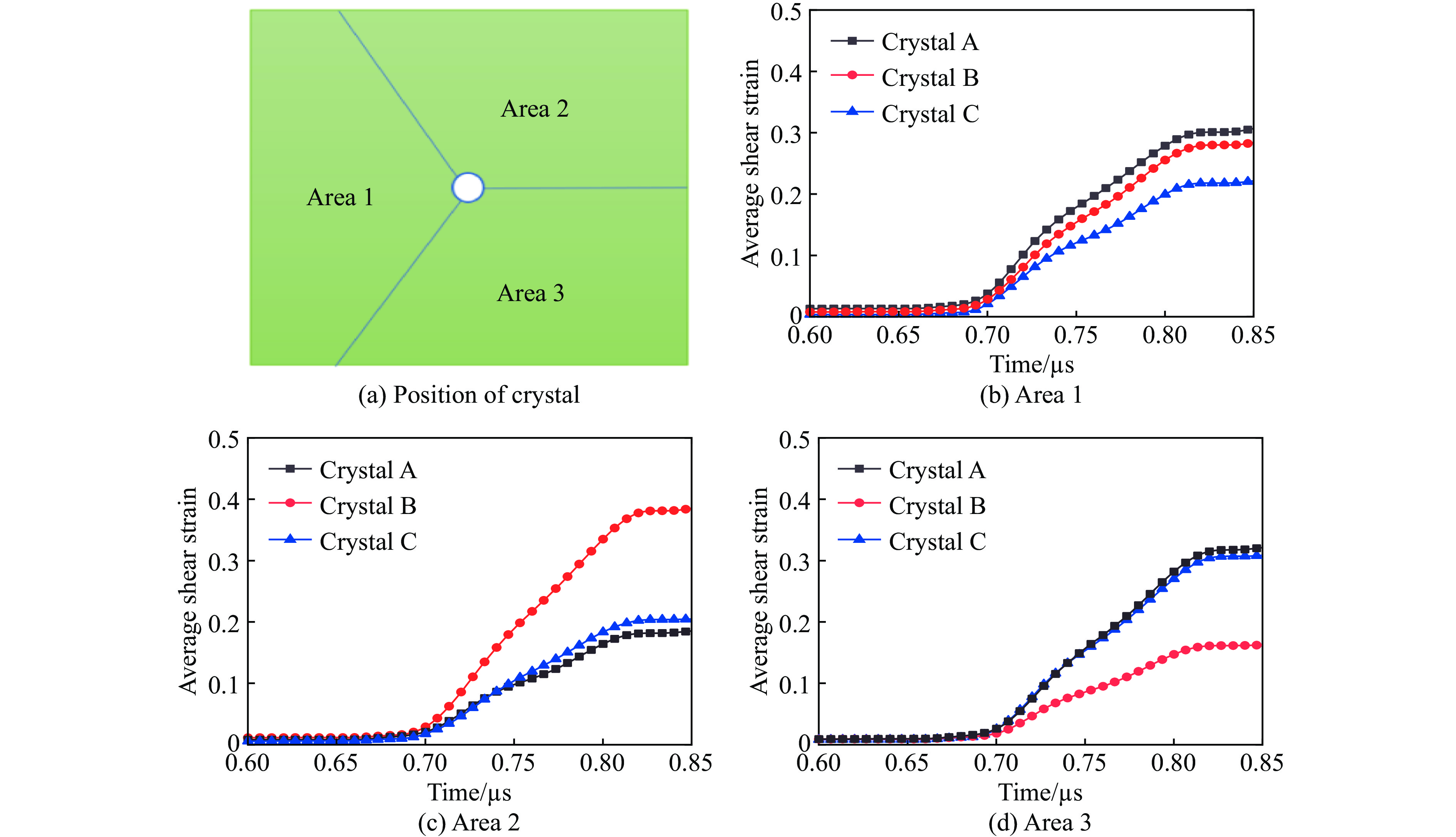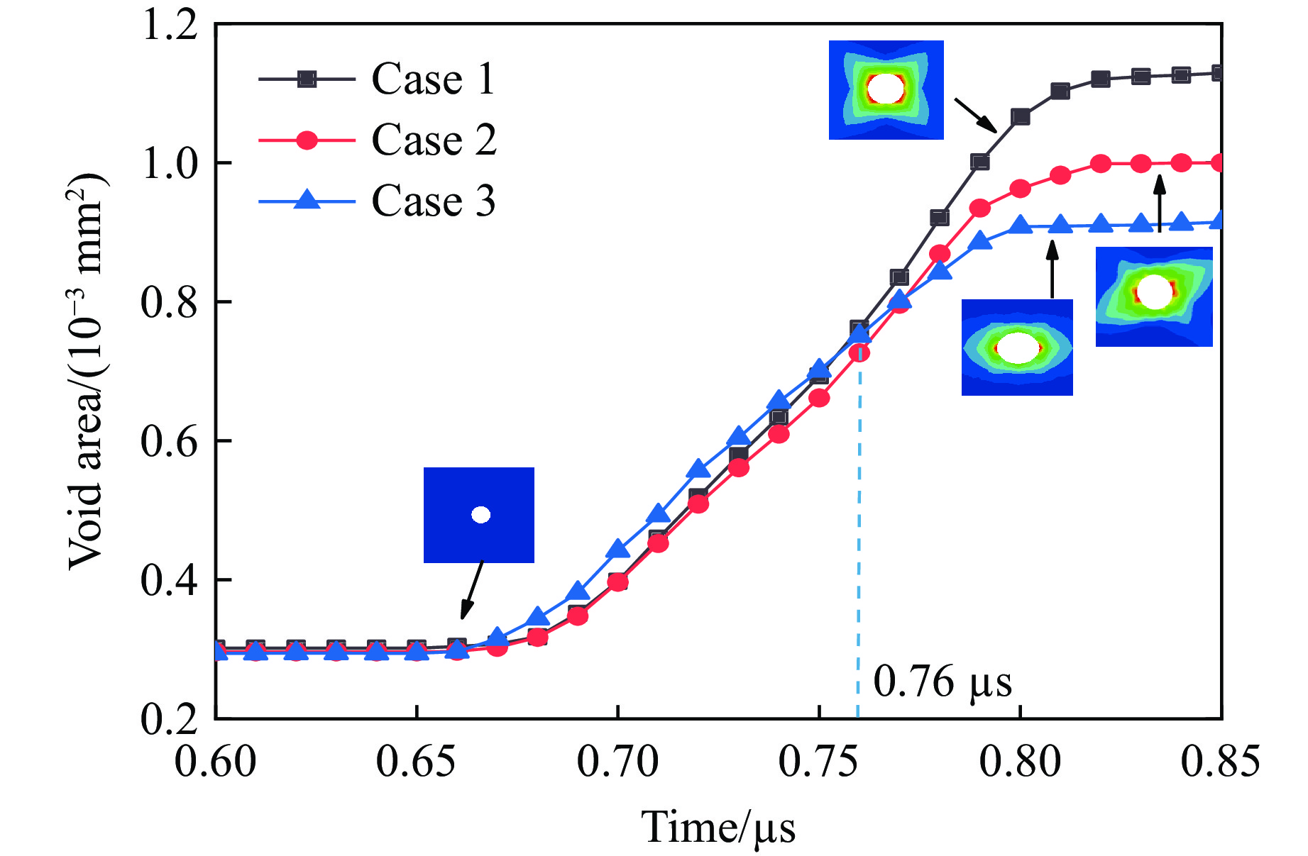 采用分子动力学方法,研究了含氦泡铜在两次稳态波加卸载作用下的微射流增长与损伤演化过程,对比了含氦泡与不含氦泡金属的损伤特征、激活应力阈值、微射流形态和速度分布以及不同区域氦泡的变形特征。结果表明:二次冲击后,氦泡膨胀的临界激活应力阈值低于孔洞形核的应力阈值,且与氦泡分布及氦泡数密度密切相关。低压首次冲击下,含氦泡金属比纯金属形成更显著的微射流;二次冲击下,氦泡使微射流更易断裂,且微射流头部最大速度更高,但微射流主体速度分布相当。二次冲击波对于已经经过首次冲击压缩、由于稀疏波作用发生轻微回弹但未恢复至初始状态的体氦泡几乎不起作用。二次冲击后,近表面已破裂飞出的氦泡壁也可能贴回气泡底部,使得部分氦原子被再次封存。二次冲击卸载后,被封存的氦泡会再次发生膨胀破裂,释放氦原子。在二次冲击作用下,氦泡塌缩机制与氦泡尺寸及冲击强度紧密关联。研究结果将为后续的辐照氦泡对金属微喷-微层裂耦合演化影响的跨尺度理论研究提供物理认识和理论依据。