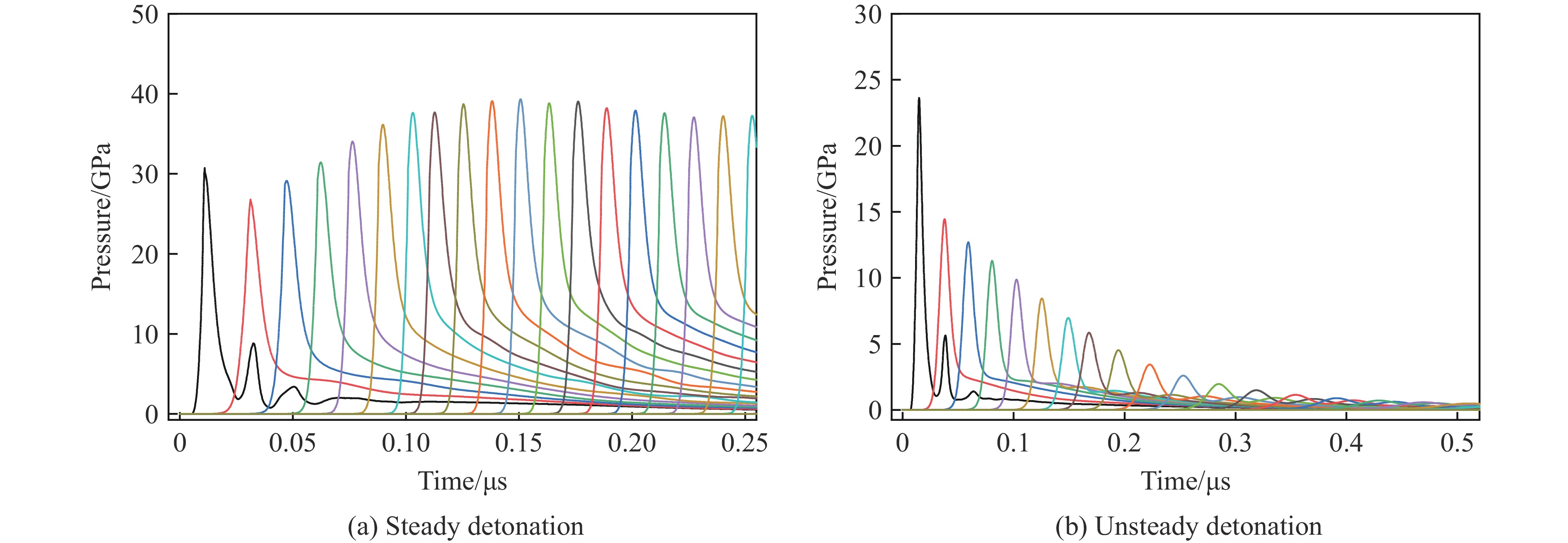 为探究裂纹及其间隙对2,4-二硝基苯甲醚(DNAN)基含铝炸药机械热点形成后反应传播特性的影响规律,制备了含不同初始裂纹的炸药药柱,采用基于发射药燃烧加载方式的炸药点火试验装置,模拟了炸药的反应传播过程,获取了加载过程和炸药反应过程的压力变化曲线以及试验后的炸药形貌特征,结合数值仿真,分析了不同预制裂纹的炸药药柱在相同药量发射药燃烧加载下的应力场分布特征。结果表明:无裂纹或无间隙“一”字裂纹工况下,药柱残骸完整,加载压力峰后迅速下降,未发生反应,热点区域位于底部;含1 mm间隙裂纹工况下,药柱发生断裂并出现局部低速反应,压力衰减过程缓慢。其中“一”字裂纹的热点区域转移至侧表面,而“十”字裂纹形成侧表面与底部的双重热点区域,反应程度进一步提升。这表明预制裂纹通过改变应力分布和扩展热点区域,进而显著影响炸药的反应进程。