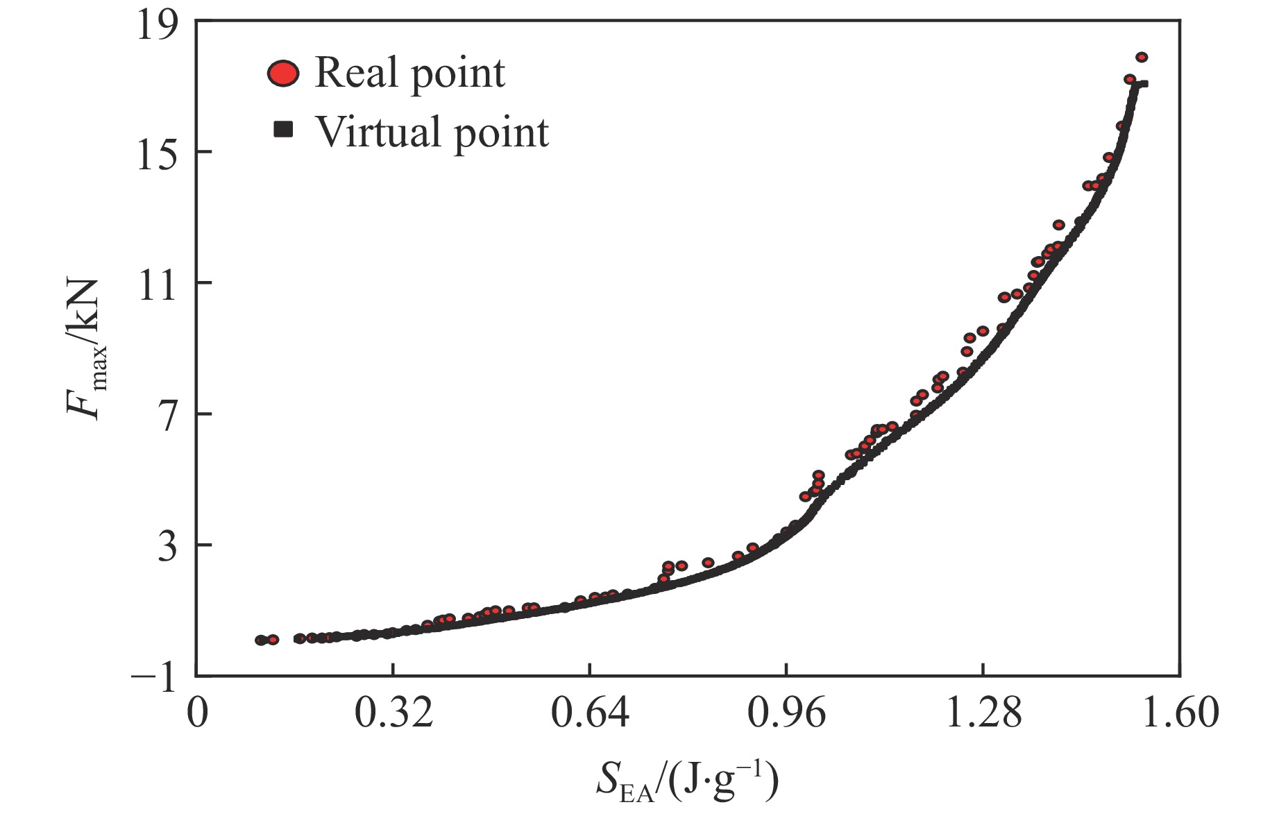 利用ABAQUS有限元软件构建木贼属植物仿生薄壁结构(horsetail-bionic thin-walled structure,HBTS)在侧向冲击下的数值模型,分析了结构的壁厚、内径和肋骨数对其耐撞性能和变形模态的影响。结果表明:肋骨数和整体壁厚的增加会明显提高HBTS的比吸能和最大峰值载荷,HBTS不同部分的壁厚变化显著影响其变形模态和耐撞性能。为了综合考虑HBTS各部分的壁厚、肋骨数、内径5个参数对耐撞性能的影响,集成modeFRONTIER优化软件与ABAQUS软件,通过参数化建模在设计空间上构建有限元模型,建立比吸能和最大峰值载荷的Kriging代理模型。使用基于Kriging代理模型的多目标优化方法获取Pareto前沿,以同时实现比吸能最大化和峰值载荷最小化。最后分析了Pareto前沿面上各HBTS的设计参数分布情况,并验证了优化结果,该方法可为薄壁结构的优化设计提供新思路。