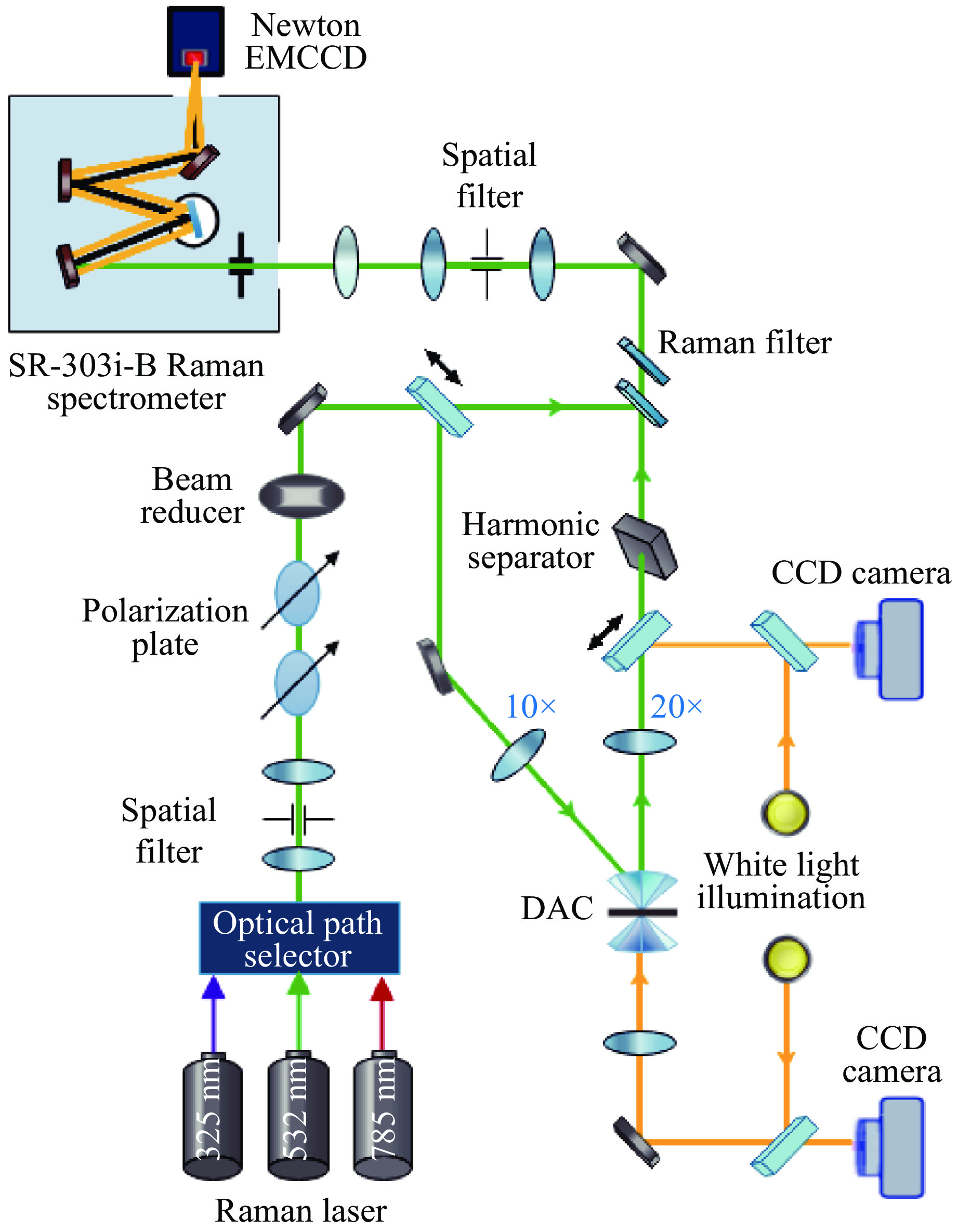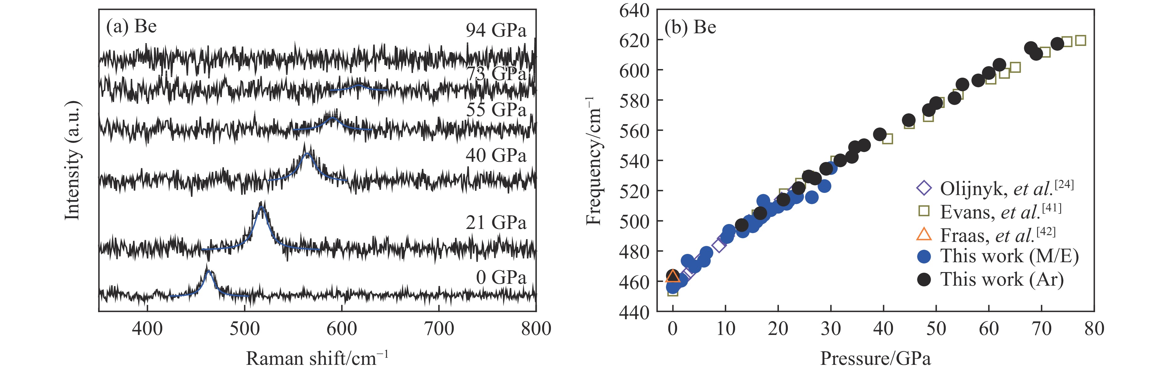 通过高压拉曼光谱可以从微观角度研究高压下材料的晶格动力学行为。然而,受金刚石荧光与金属样品强反射的影响,高压下金属样品的拉曼光谱信号较难获得。为此,发展了一种简易的金刚石对顶砧倾角散射高压拉曼光谱技术,可实现六角密排结构(hcp)金属样品的高压拉曼光谱信号测量。以hcp金属Be为例,通过测量最高压力达73 GPa时的剪切拉曼模E2g,获得了其弹性常数C44随压力的变化关系。所提出的金刚石对顶砧倾角散射高压拉曼光谱技术为研究金属材料的成键状态、电子结构、声子-电子耦合效应提供一种新手段。