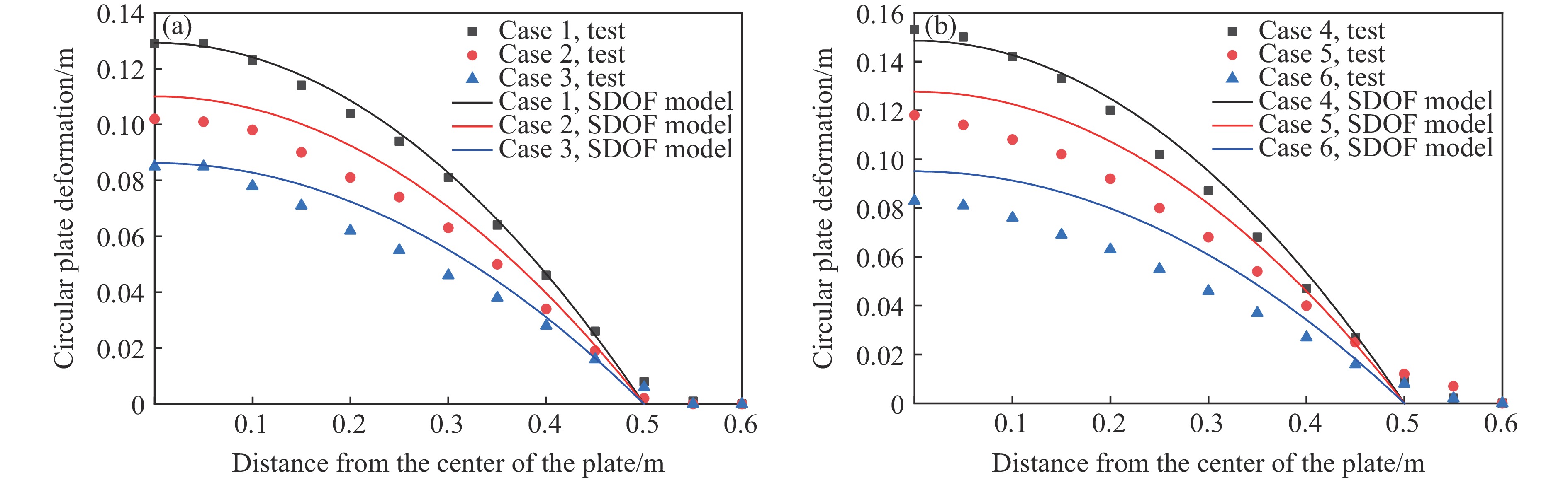 基于等效单自由度模型理论,考虑变形过程中弯矩和膜力的联合承载,建立了空中近爆作用下固支弹塑性圆板的动力学模型,实现了圆板加载和卸载的全过程描述。基于文献中的试验工况建立有限元模型,利用有限元数值模拟对空爆作用下固支圆板的动态响应进行分析,并将动力学模型计算结果与试验结果及有限元数值模拟结果进行对比,验证了动力学模型计算结果的准确性。结果表明,理论计算结果与试验结果及数值模拟结果吻合较好,建立的动力学模型可以应用于固支圆板在空中近爆载荷作用下的大变形预测,为结构抗爆提供技术支持。