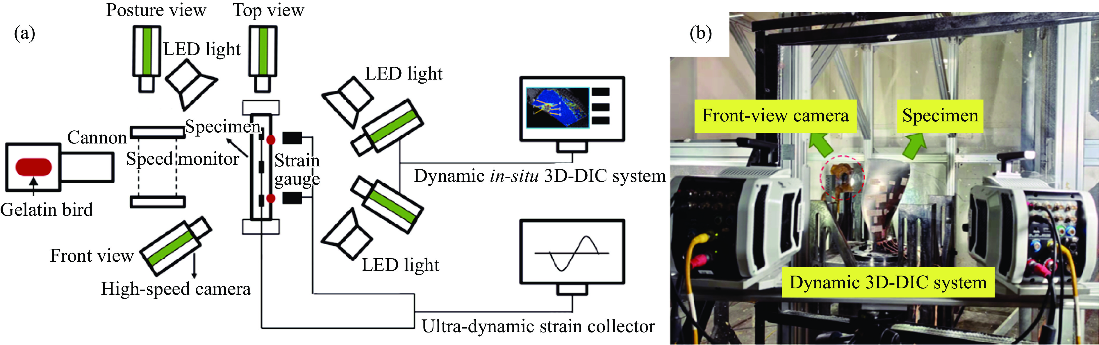 航空发动机是鸟撞事件中的高概率、高危部件,对风扇叶片相关抗鸟撞问题的研究具有重要意义。采用三维数字图像相关(3D-DIC)法开展了TC4钛合金空心结构风扇叶片在不同高度下的静置鸟撞试验。此外,基于Johnson-Cook动态本构模型与损伤失效理论建立了相关计算模型,较好地描述并验证了航空发动机风扇叶片在鸟撞过程中的动态变形响应过程与失效情况。结果表明:鸟撞速度的变化主要影响叶片变形的量级,而不会引起叶片特征模态的改变;在鸟撞过程中,叶根是应力/应变局域化显著区域,更容易发生损伤失效;随着鸟撞位置的提高,空心结构风扇叶片在叶根处失效断裂对应的临界鸟撞速度逐渐提高,整体结构抗鸟撞性能越好。试验结果及相应的数值模拟为TC4钛合金空心结构风扇叶片的抗鸟撞设计提供了一定的参考。