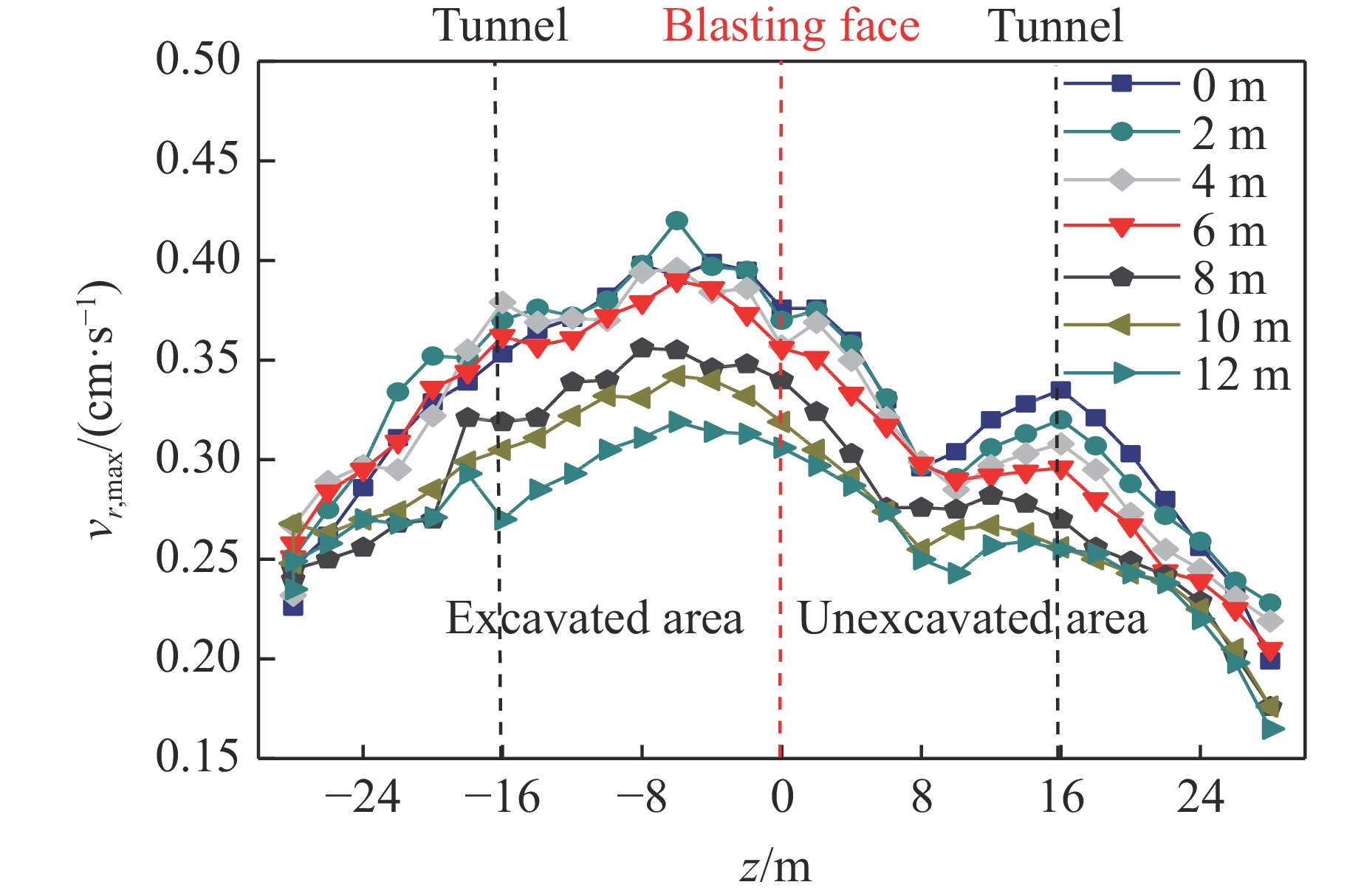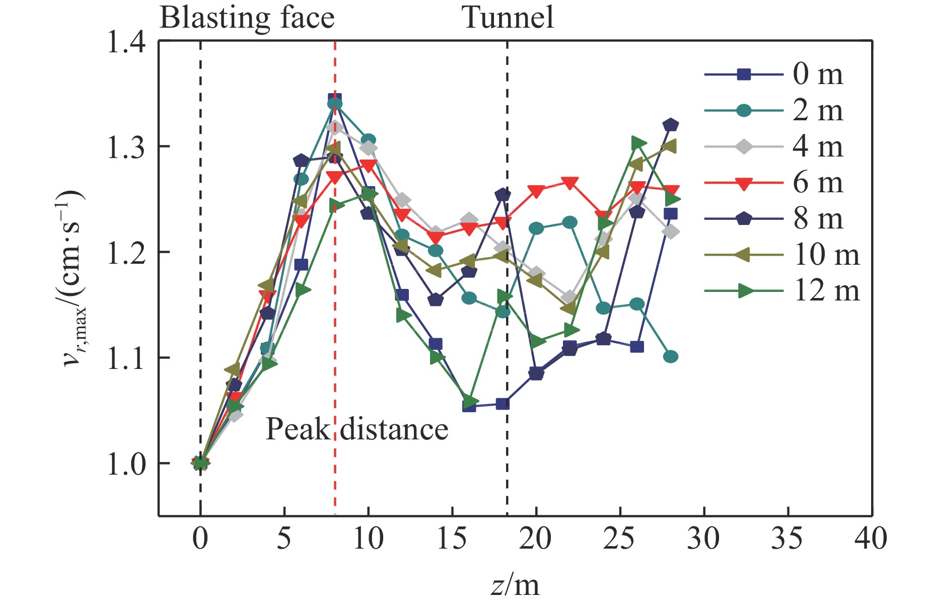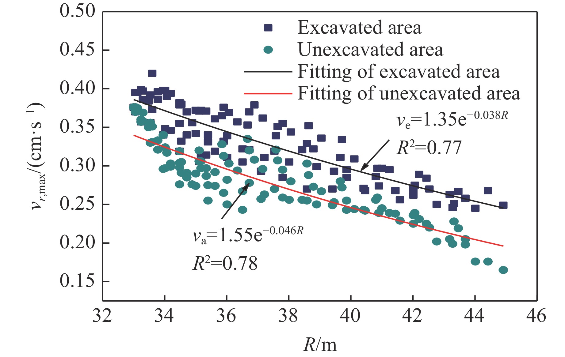 研究城市地下工程爆破施工地表振动衰减规律对邻近建筑保护具有重要意义。以武汉地铁8号线二期联络通道爆破开挖工程为例,运用现场监测与ANSYS/LS-DYNA三维有限元数值模拟计算相结合的方法,分析了联络通道爆破开挖作用下地表振动的空洞效应,并预测其衰减规律。研究表明:地表质点的峰值振速随着与掌子面距离的增大而不断减小,成洞区域上方地表振速明显大于未开挖区域;空洞效应放大系数随着与爆源纵向距离的增大先增大后缓慢减小,沿通道两侧随着距离的增大而不断减小,空洞效应的影响减弱;在距爆源8 m处(掌子面后方6 m),放大系数达到最大,应重点在距离爆源2~8 m即空洞效应较大的地表区域内开展振动监测。在开挖区域,与介质和爆破条件相关的系数、振动衰减系数和层介质吸收系数分别为58.52、1.43和0.019,而在未开挖区域,则分别为152.09、1.74和0.023。