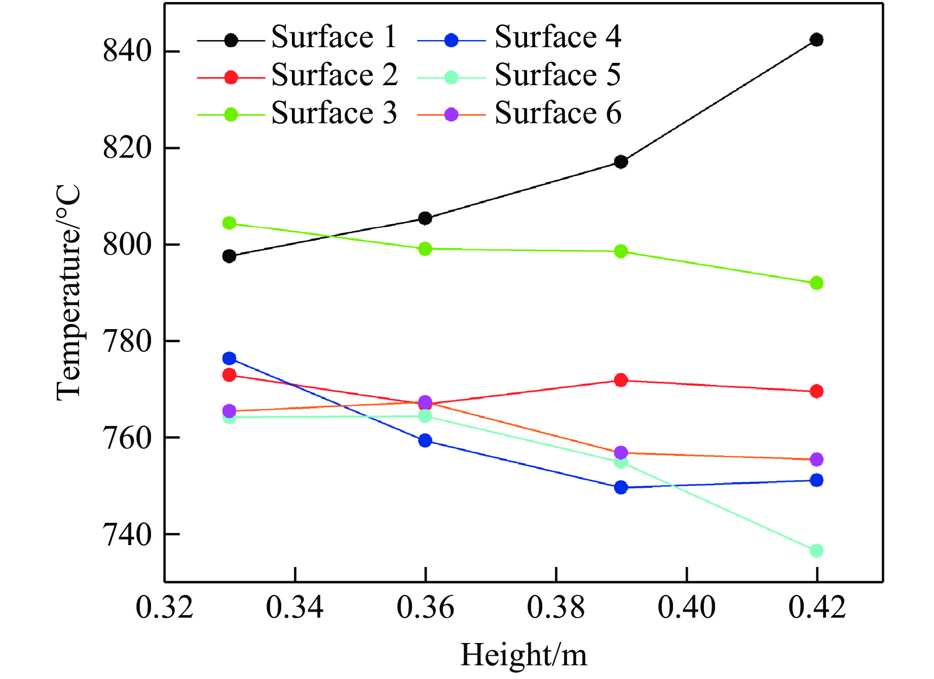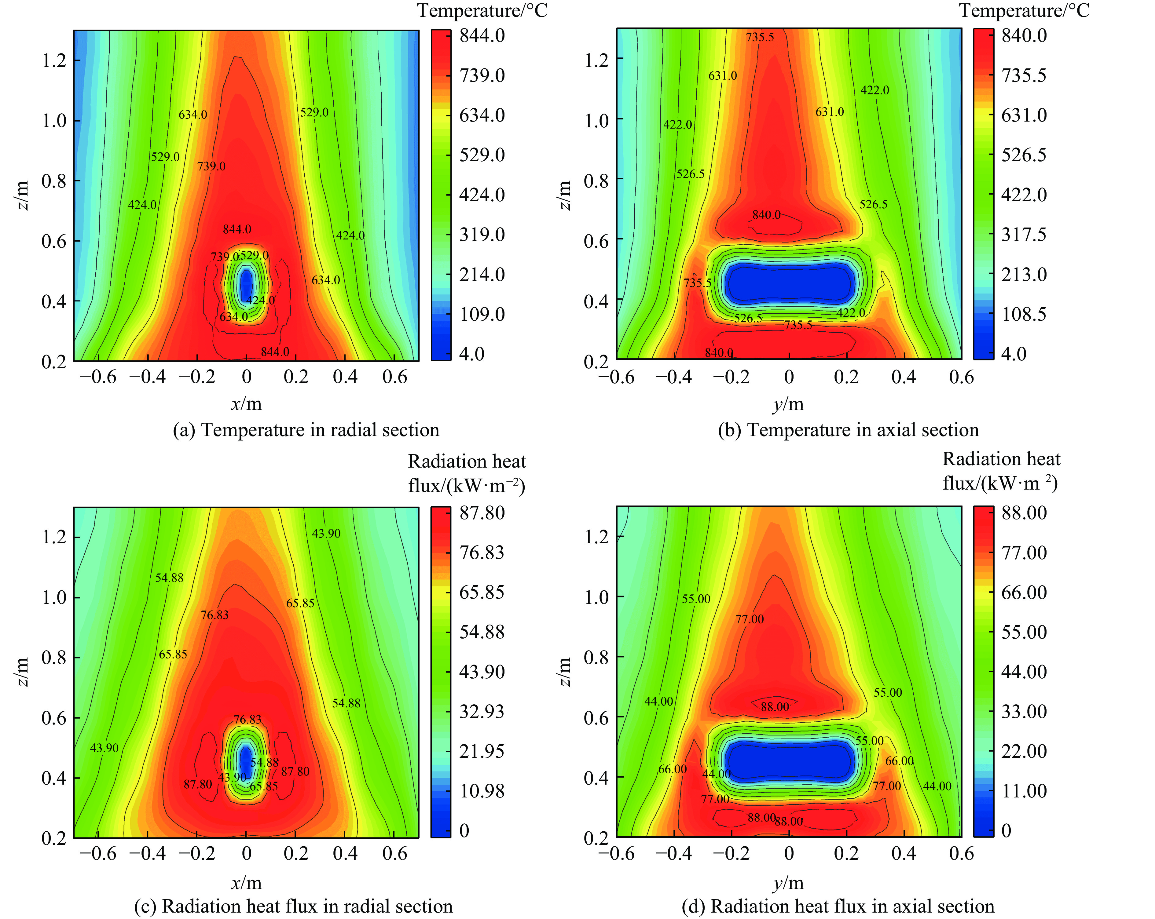 为研究快速烤燃下池火中火焰特征量对烤燃弹的影响,建立了池火的快速烤燃模型,得到了烤燃弹的传热特性,分析了烤燃过程中烤燃弹放置高度和油池尺寸对火焰特征量的影响。结果表明:随着烤燃弹放置高度的增加,烤燃弹表面最高温度区域由上表面转移到下表面,辐射热通量峰值由烤燃弹上方转移到烤燃弹下方;随着油池尺寸增加,烤燃弹各表面温度更加均匀,烤燃弹吸收的热通量增加,烤燃弹表面温度升高。因此,快速烤燃试验中烤燃弹的放置高度与油池尺寸均会对火焰特征量造成影响,进而影响烤燃弹的快速烤燃特性。
