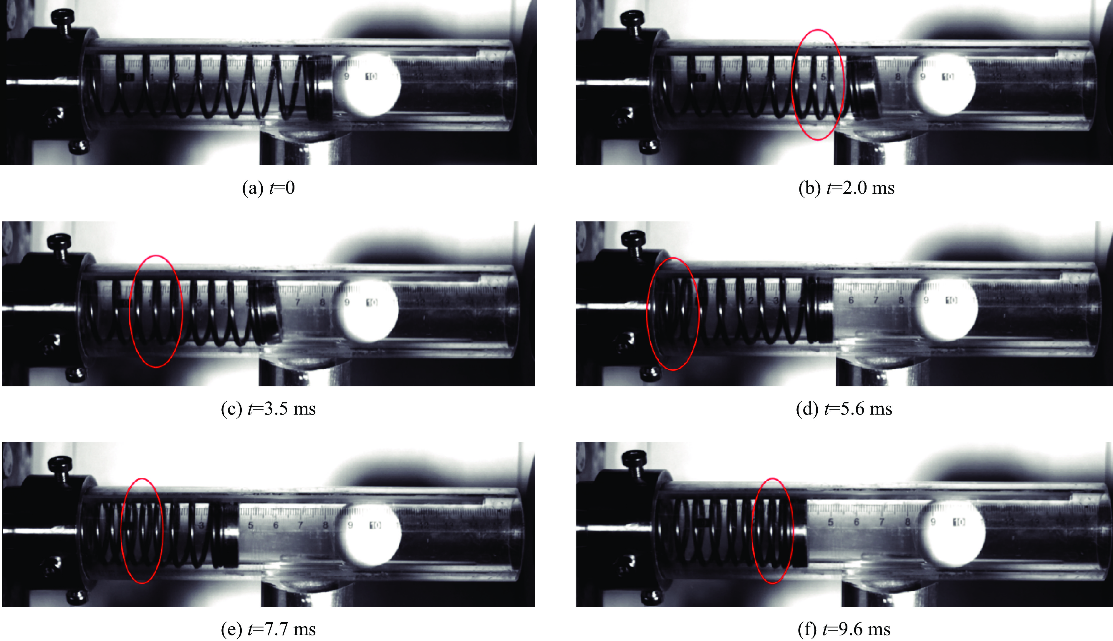 冲量是爆炸空气冲击波的重要威力参数,基于动量块的测试方法是获取冲量的途径之一。通过开展弹簧-质量块系统在动量球撞击下的响应特性研究,尝试将动量球的动量转换为弹簧的定量压缩位移。研究过程中,选定一种弹簧-质量块组合,通过开展聚甲醛、聚四氟乙烯、铝、钢4种不同动量球撞击试验,获得了弹簧-质量块压缩响应特性和动量转化效率。结果表明,在所试验的测试范围内,弹簧的最大压缩位移与动量球的加载速度线性相关,聚四氟乙烯动量球与弹簧-质量块系统耦合最稳定,适合作为冲击波冲量测试的转换载体。该系统可以为冲击波测量提供一种新方法。