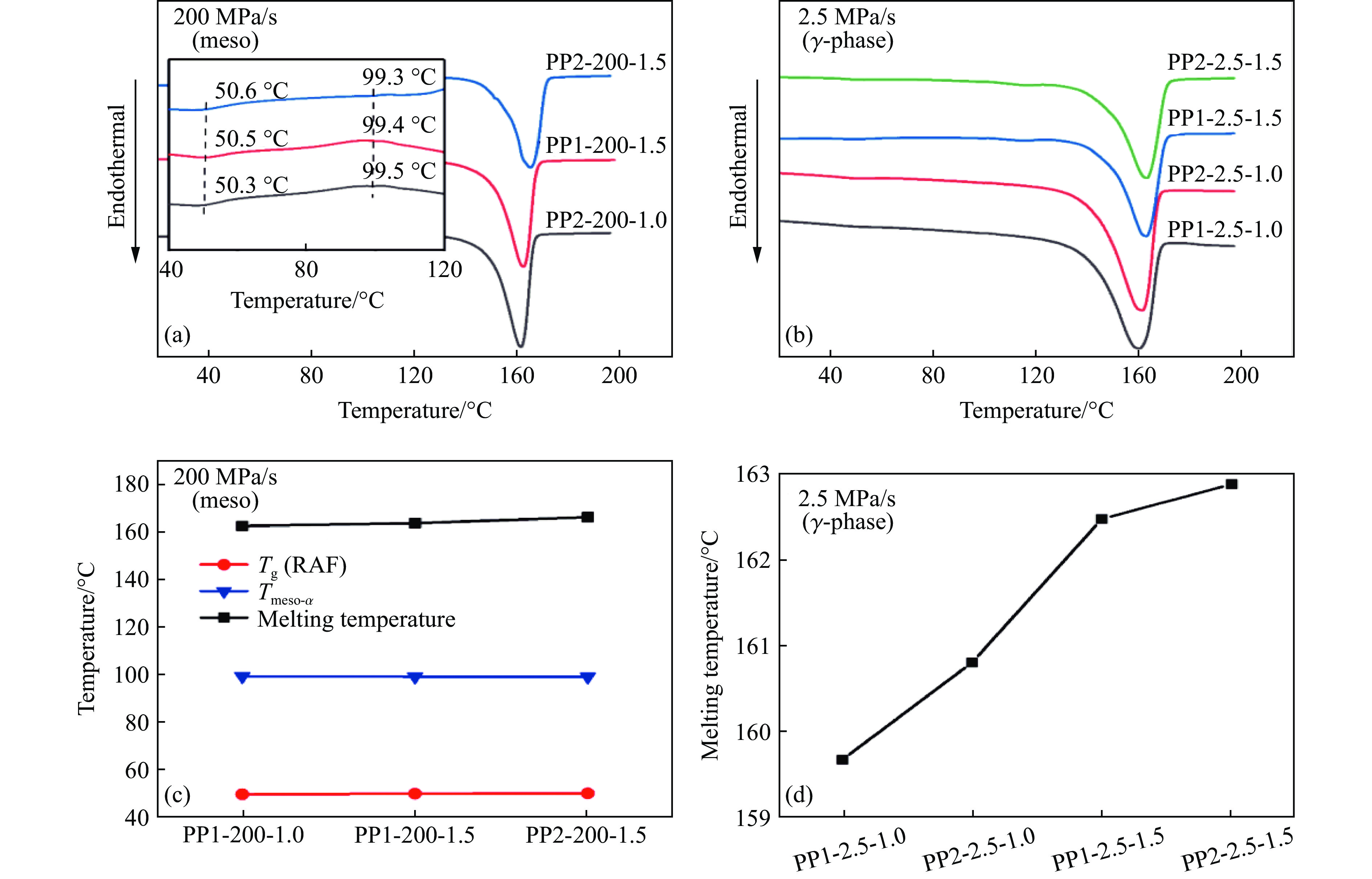 在聚合物的高压成型过程中,压力、增压速率以及聚合物的分子量都会影响制品的最终结晶结构,研究不同高压处理方法与等规聚丙烯(isotactic polypropylene,iPP)结晶结构之间的关系,有利于深入认识高压成型工艺对聚合物结晶行为的影响。利用广角X射线衍射技术和差示扫描量热法,研究了两种不同分子量的iPP在不同增压速率、不同压力下的结晶行为及制品的热性能。结果表明:压力是决定中间相iPP形成的关键因素,只要压力足够高,就能够制备出完全的中间相iPP;在足够高的压力下,增压速率越高,越有利于中间相iPP的形成,相反更容易形成γ相iPP;分子量越高,制备中间相iPP需要的压力越高,需要的临界增压速率越大。制品的热性能分析表明,不同条件下得到的中间相制品在热性能上基本没有区别,但γ相iPP的晶体完善性与增压条件有关。