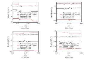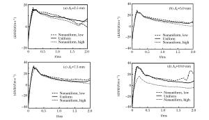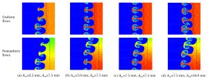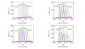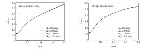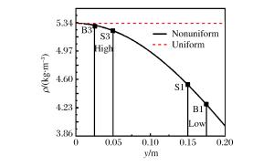 Abstract: The double-mode Richtmyer-Meshkov (RM) instability, when the incident shock (Ma=1.27) impacting on several groups of initial double-mode cosine interface formed by different amplitudes in initially nonuniform flows whose density is Gaussian distribution, was numerically investigated using the large-eddy simulation code MVFT (multi-viscous-flow and turbulence).The numerical results show that the coupling effects between different amplitudes in the nonuniform flows are weak and the evolution of the interface with a large initial amplitude in the low density nonuniform area grows fastest, while that with a small initial amplitude in the high density nonuniform area grows slowly.Further analyses reveal that within a certain initial amplitude range, the amplitude growth rate and energy in the low density zone of nonuniform flows is larger than those in the high density zone, thus the influence of the initial amplitude on the low density zone is more obvious, which eventually leads to a faster evolution process of the RM instability.Moreover, the changing phenomena of uniform flows are opposite to nonuniform flows.Thus, it can be concluded that the evolution mechanisms of the RM instability between the nonuniform and uniform flows are distinctive. -