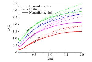 Gas Density/(kg·m-3) γ η/(10-6 m2·s-1) Prl D/(cm2·s-1) Air 1.29 1.40 15.5 0.71 0.204 SF6 5.34 1.09 18.2 0.90 0.097 表 2 双模态界面的初始振幅