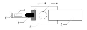 图  弹托捕捉器(1.BOPP膜片; 2.泄气口; 3.弹丸; 4.弹托; 5.泄气舱; 6.泄气口; 7.发射管)