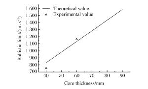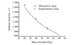 hf/mm hb/mm ρf/(kg·m-3) σu/MPa n γi 6.2 10.6 7 850 779 0.586 1.4 Table 2. Comparison of ballistic limit computed by theoretical model with experimental results