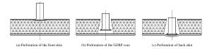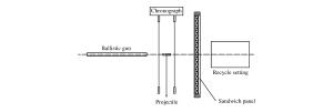 Mass/g Core thickness/mm Exp. value/(m·s-1) Calc. value/(m·s-1) Error/% 40 40 753.8 831.9 10.7 30 60 1 422.9 1 402.9 ─ 40 60 1 162.7 1 132.4 2.6 50 60 974.1 958.1 1.6 50 75 879.0 1 144.7 ─ Table 3. Energy absorption ratio of composite GFRP sandwich panels under impact of flat-nosed cylindrical projectile with ballistic limit velocity