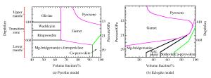 Figure  1.  Mineral composition of the upper mantle and transition zone in pyrolite models including Pyrolytic model and Eclogite model (modified from Ref.[10])