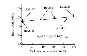 Figure  3.  Bulk modulus vs.mole fraction of almandine for almandine-pyrope binary system[27]