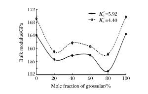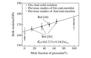 Figure  5.  Bulk modulus vs.mole fraction of grossular for grossular-andradite binary system[44]