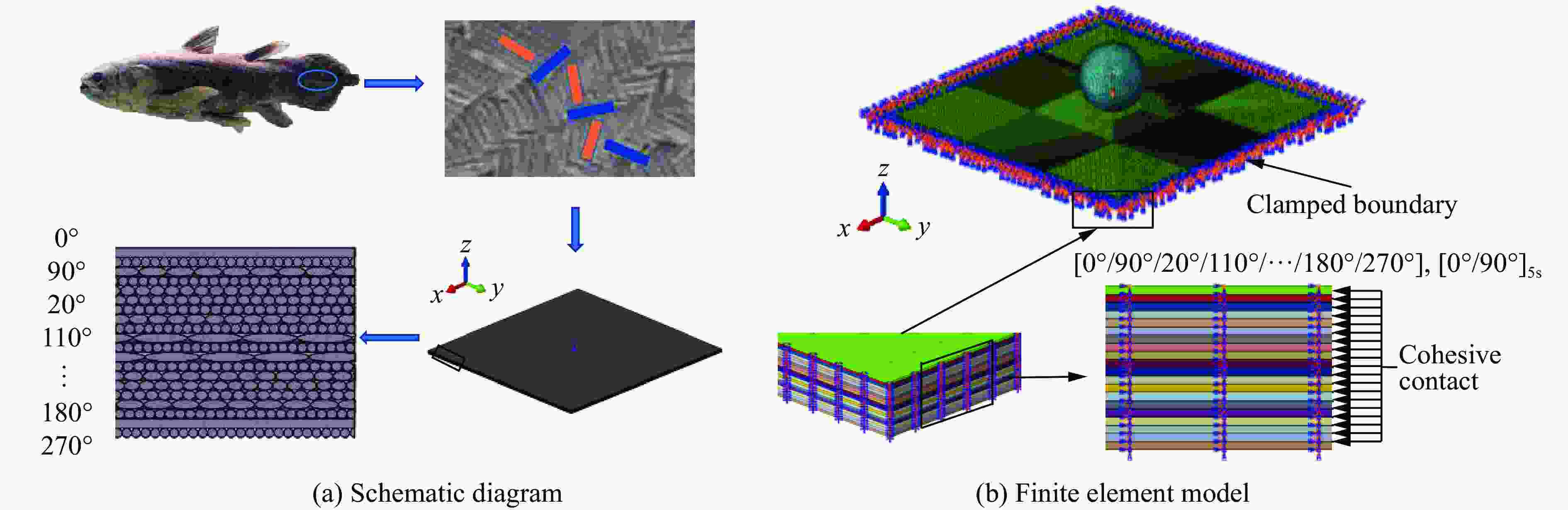 [1] VOGELESANG L B, VLOT A. Development of fibre metal laminates for advanced aerospace structures [J]. Journal of Materials Processing Technology, 2000, 103(1): 1–5. doi: 10.1016/S0924-0136(00)00411-8 [2] VALLONS K, BEHAEGHE A, LOMOV S V, et al. Impact and post-impact properties of a carbon fibre non-crimp fabric and a twill weave composite [J]. Composites Part A: Applied Science and Manufacturing, 2010, 41(8): 1019–1026. doi: 10.1016/j.compositesa.2010.04.008 [3] DOLATI S H, REZAEEPAZHAND J, SHARIATI M. Numerical simulation of hail impact response of hybrid corrugated core sandwich panels [J]. Journal of Reinforced Plastics and Composites, 2019, 38(14): 643–657. doi: 10.1177/0731684419838332 [4] 莫袁鸣, 赵振华, 罗刚, 等. 复合材料层合板冰雹冲击损伤研究 [J]. 重庆理工大学学报(自然科学), 2020, 34(3): 112–121. doi: 10.3969/j.issn.1674-8425(z).2020.03.017MO Y M, ZHAO Z H, LUO G, et al. Investigation on damage of composite laminates subject to hail impact [J]. Journal of Chongqing University of Technology (Natural Science), 2020, 34(3): 112–121. doi: 10.3969/j.issn.1674-8425(z).2020.03.017 [5] WANG B, XIONG J, WANG X J, et al. Energy absorption efficiency of carbon fiber reinforced polymer laminates under high velocity impact [J]. Materials & Design, 2013, 50: 140–148. doi: 10.1016/j.matdes.2013.01.046 [6] 刘建刚, 李玉龙, 索涛, 等. 复合材料T型接头冰雹高速撞击损伤的数值模拟 [J]. 爆炸与冲击, 2014, 34(4): 451–456. doi: 10.11883/1001-1455(2014)04-0451-06LIU J G, LI Y L, SUO T, et al. Numerical simulation of high velocity impact of composite T-joint by hailstone [J]. Explosion and Shock Waves, 2014, 34(4): 451–456. doi: 10.11883/1001-1455(2014)04-0451-06 [7] 张海广, 王瑜, 安连浩, 等. 冲击载荷下分支交错层状仿生复合材料动态断裂行为的实验研究和数值模拟 [J]. 高压物理学报, 2022, 36(1): 014101. doi: 10.11858/gywlxb.20210776ZHANG H G, WANG Y, AN L H, et al. Experimental study and numerical simulation of dynamic fracture behavior of branch staggered laminated biomimetic composites under impact loading [J]. Chinese Journal of High Pressure Physics, 2022, 36(1): 014101. doi: 10.11858/gywlxb.20210776 [8] SHANG J S, NGERN N H H, TAN V B C. Crustacean-inspired helicoidal laminates [J]. Composites Science and Technology, 2016, 128: 222–232. doi: 10.1016/j.compscitech.2016.04.007 [9] 王瑜, 武晓东, 安连浩, 等. 仿生螺旋结构复合材料动态断裂行为的实验研究和数值模拟 [J]. 复合材料学报, 2022.WANG Y, WU X D, AN L H, et al. Experimental study and numerical simulation of dynamic fracture behavior of biomimetic spiral structured composite [J]. Acta Materiae Compositae Sinica, 2022. [10] 田野, 罗荣超, 廖昌宇, 等. 仿生蛛网结构有机硅胶缓冲垫缓冲性能 [J]. 包装工程, 2022, 43(3): 155–160. doi: 10.19554/j.cnki.1001-3563.2022.03.019TIAN Y, LUO R C, LIAO C Y, et al. Cushioning performance of biomimetic cobweb silicone cushion [J]. Packaging Engineering, 2022, 43(3): 155–160. doi: 10.19554/j.cnki.1001-3563.2022.03.019 [11] YIN S, YANG R H, HUANG Y, et al. Toughening mechanism of coelacanth-fish-inspired double-helicoidal composites [J]. Composites Science and Technology, 2021, 205: 108650. doi: 10.1016/j.compscitech.2021.108650 [12] SHOKRIEH M M, REZAEI D. Analysis and optimization of a composite leaf spring [J]. Composite Structures, 2003, 60(3): 317–325. doi: 10.1016/S0263-8223(02)00349-5 [13] HUANG H B, MA X, QIAO J W, et al. Numerical simulation of failure behaviors of CFRP laminates on hashin model coupled with cohesive elements [J]. IOP Conference Series: Materials Science and Engineering, 2018, 382(3): 032062. doi: 10.1088/1757-899X/382/3/032062 [14] 陈星. 基于ABAQUS的冰雹撞击有限元分析 [D]. 呼和浩特: 内蒙古工业大学, 2013: 37−47.CHEN X. Finite element analysis for hail impact dependent on ABAOUS [D]. Hohhot: Inner Mongolia University of Technology, 2013: 37−47. [15] RHYMER J D. Force criterion prediction of damage for carbon/epoxy composite panels impacted by high velocity ice [D]. San Diego: University of California, 2012. -