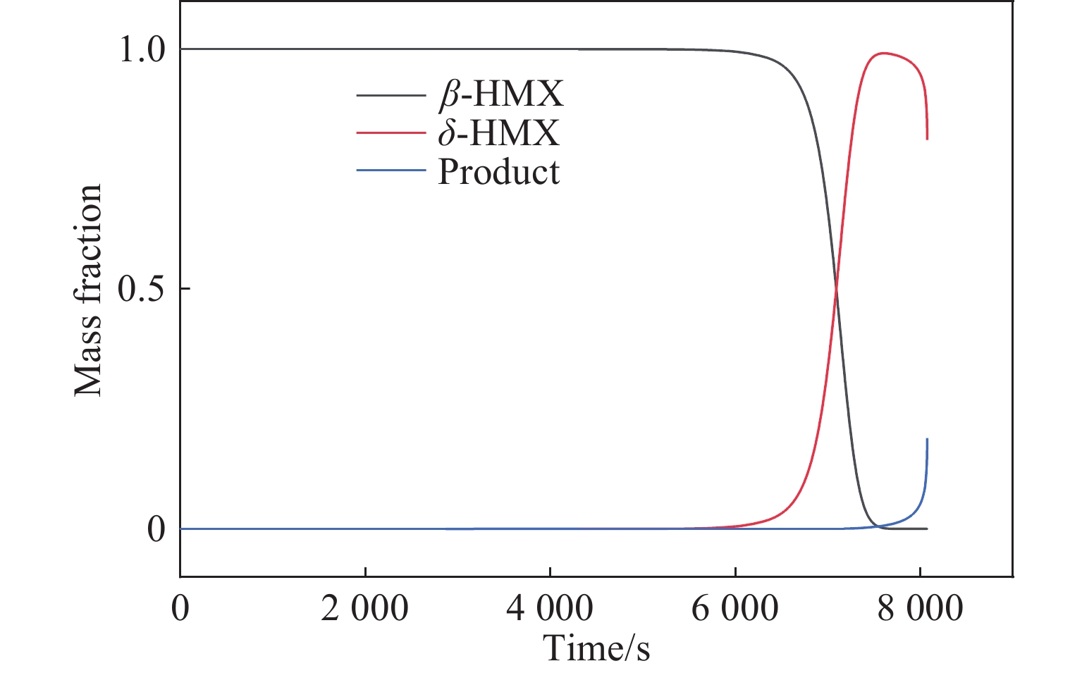 (J∙mol−1∙K−1)Ef/(kJ∙mol−1) ΔSr/ (J∙mol−1∙K−1) Er/(kJ∙mol−1) Q/(J∙g−1) 1 123.0 204 89.0 189 −25 2 −41.7 102 −75.2 865 −25 3 3.16×1016 200 −120 4 1.50×1014 173 3200 表 2 Kel-F和AP的反应动力学参数
