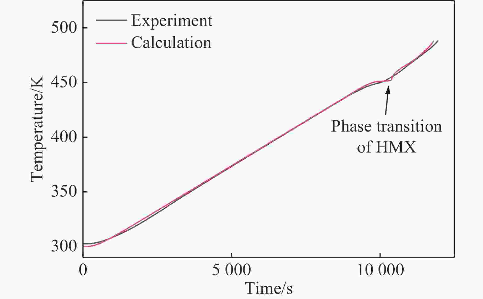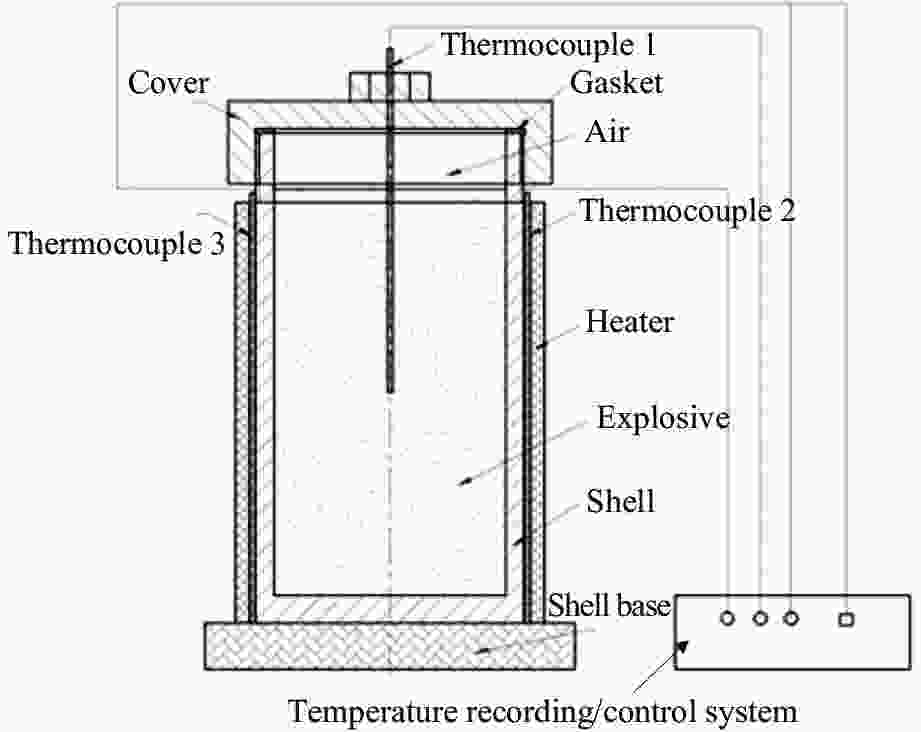 摘要: 为研究新型奥克托今(HMX)基浇注炸药GOLA-1(HMX-Al-高氯酸铵(AP)-黏结剂(Kel-F))在热刺激下的响应特性,对GOLA-1炸药进行了温升速率为1.0和1.5 K/min的烤燃实验,获得了炸药中心点温升和点火时间等信息。在此基础上,结合烤燃数值模拟,预测了炸药的点火位置及温度。数值模拟与实验结果吻合较好,在1.0和1.5 K/min温升速率下GOLA-1炸药点火时间的相对偏差分别为1.3%和1.7%,表明所建立的数值模型较为合理。采用该模型进行了不同温升速率下的数值模拟,结果表明:当温升速率下降至0.4 K/min时,点火位置由装药底面边缘的环形区域移动至装药中心轴线上靠近下部的位置;点火位置随温升速率的下降而逐渐向药柱上部移动,温升速率对点火温度基本没有影响。Abstract: In order to study the response characteristics of a new HMX-based cast explosive GOLA-1 (HMX-aluminum-ammonium perchlorate (AP)-binder (Kel-F)) under thermal stimulation, the cook-off tests with heating rates of 1.0 and 1.5 K/min were conducted, and the information such as the temperature rise of the explosive center point and the ignition time was obtained. On that basis, and combined with numerical simulation of cook-off, the ignition position and temperature of explosives were predicted. The numerical simulation is in good agreement with the experimental results. The ignition time deviations of GOLA-1 explosive at heating rates of 1.0 and 1.5 K/min are 1.3% and 1.7%, respectively, indicating that the established simulation model is reasonable. On above basis, numerical simulations at different heating rates were carried out. The results show that when the heating rate decreased to 0.4 K/min, the ignition position moved from the annular area at the bottom edge of the charge to the lower part of the central axis of the charge column. As the heating rate continued to decrease, the ignition position gradually moved to the upper part of the charge, while the heating rate had little effect on the ignition temperature.