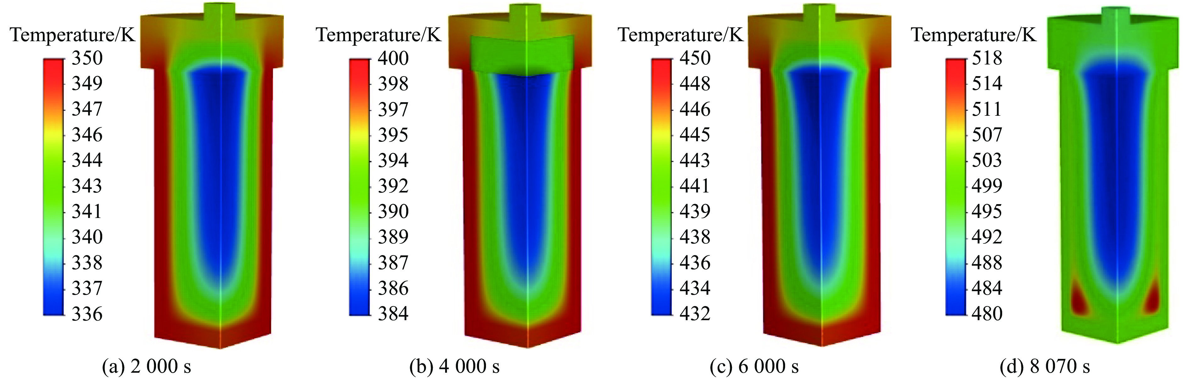 Component Density/(kg∙m−3) C/(J·kg−1·K) λ/(W·m−1·K) HMX 1850 1004.26 0.5358 Kel-F 2020 1000.43 0.0527 AP 1950 1255 0.2760 Al 2719 871 1.39 Steel 8030 502.48 16.27 Air 1.225 1006.43 0.0242 表 4 温升速率与点火位置的关系