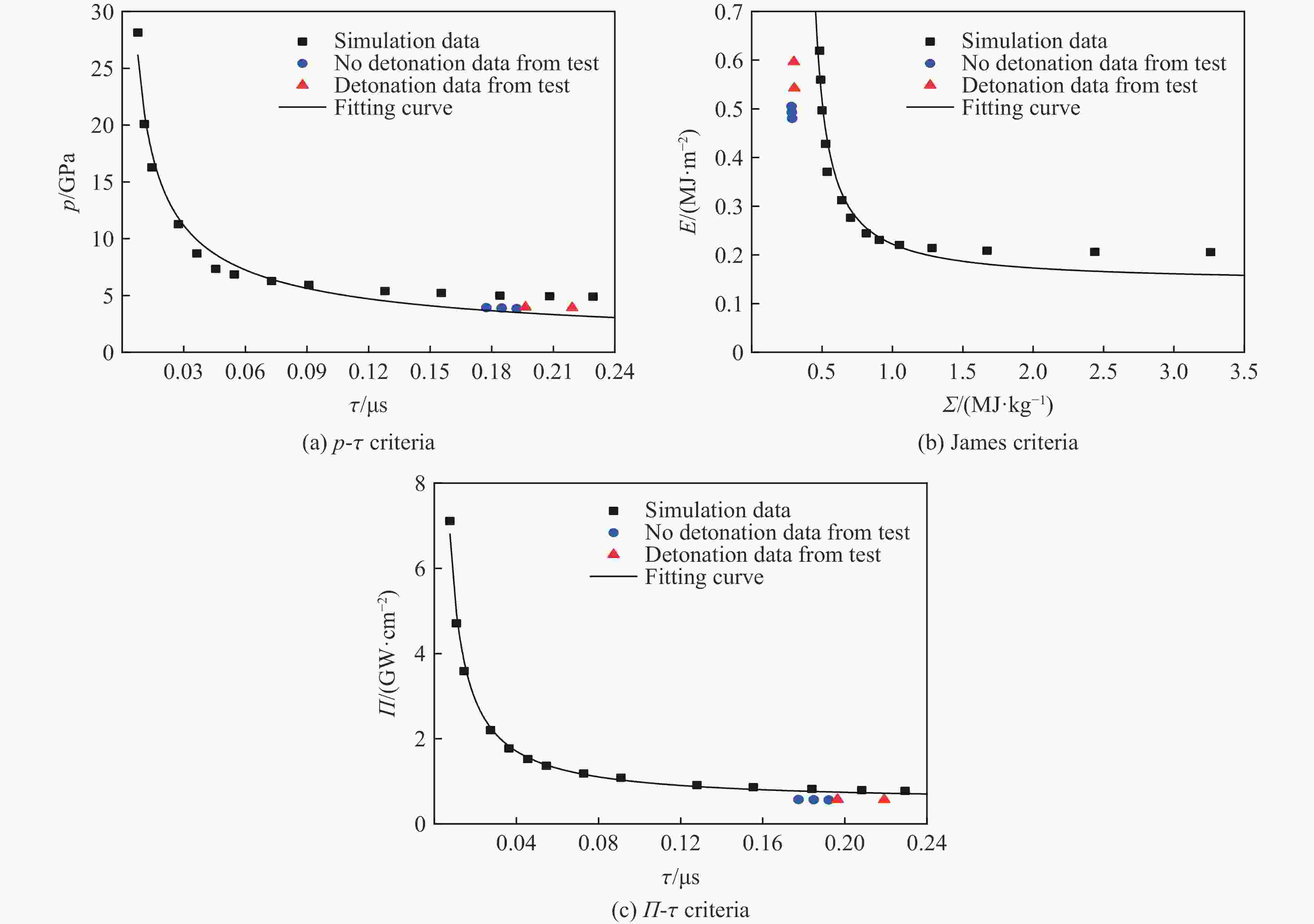 [1] WALKER F E, WASLEY R J. Critical energy for shock initiation of heterogeneous explosive [J]. Explosivstoffe, 1969, 17(1): 9–13. [2] WALKER F E, WASLEY R J. A General model for the shock initiation of explosives [J]. Propellants, Explosives, Pyrotechnics, 1976, 1(4): 73–80. doi: 10.1002/prep.19760010403 [3] JAMES H R. Critical energy criterion for the shock Initiation of explosives by projectile impact [J]. Propellants, Explosives, Pyrotechnics, 1988, 13(2): 35–41. doi: 10.1002/prep.19880130202 [4] JAMES H R. An extension to the critical energy criterion used to predict shock initiation thresholds [J]. Propellants, Explosives, Pyrotechnics, 1996, 21(1): 8–13. doi: 10.1002/prep.19960210103 [5] WELLE E J, MOLEK C D, WIXOM R R, et al. Microstructural effects on the ignition behavior of HMX [J]. Journal of Physics: Conference Series, 2014, 500(5): 052049. doi: 10.1088/1742-6596/500/5/052049 [6] KIM S, MILLER C, HORIE Y, et al. Computational prediction of probabilistic ignition threshold of pressed granular octahydro-1, 3, 5, 7-tetranitro-1, 2, 3, 5-tetrazocine (HMX) under shock loading [J]. Journal of Applied Physics, 2016, 120(11): 115902. doi: 10.1063/1.4962211 [7] BOWDEN M D, MAISEY M P. Determination of critical energy criteria for hexanitrostilbene using laser-driven flyer plates [C]//Proceedings of SPIE 7070, Optical Technologies for Arming, Safing, Fuzing, and Firing Ⅳ. San Diego: SPIE, 2008: 707004. [8] SCHWARZ A C. Study of factors which influence the shock-initiation sensitivity of hexanitrostilbene (HNS) [R]. Albuquerque: Sandia National Laboratories, 1981. [9] BOWDEN M D. A volumetric approach to shock initiation of hexanitrostilbene and pentaerythritol etranitrate [C]//Proceedings of the Conference of the American Physical Society Topical Group on Shock Compression of Condensed Matter. St. Louis, MO, USA, 2017. [10] 莫建军, 王桂吉, 吴刚, 等. 炸药TATB/粘结剂的短脉冲冲击起爆阈值测量 [J]. 实验力学, 2010, 25(1): 41–46.MO J J, WANG G J, WU G, et al. Measurement of the short-duration pulse shock initiation thresholds for TATB explosive/adhesive [J]. Journal of Experimental Mechanics, 2010, 25(1): 41–46. [11] 同红海, 奥成刚, 韩克华, 等. 超细HNS-Ⅳ炸药的窄脉冲起爆判据研究 [J]. 火工品, 2011(2): 32–36. doi: 10.3969/j.issn.1003-1480.2011.02.009TONG H H, AO C G, HAN K H, et al. Study on the short pulse initiation criterion of ultrafine HNS-Ⅳ explosive [J]. Initiators & Pyrotechnics, 2011(2): 32–36. doi: 10.3969/j.issn.1003-1480.2011.02.009 [12] 张凡, 张蕊, 解瑞珍, 等. 凝聚态炸药冲击起爆判据的分析与评价 [J]. 北京理工大学学报, 2017, 37(Suppl 2): 21–24.ZHANG F, ZHANG R, XIE R Z, et al. Analysis and assessment on shock initiation criterion for condensed explosives [J]. Transactions of Beijing Institute of Technology, 2017, 37(Suppl 2): 21–24. [13] 钱石川, 甘强, 任志伟, 等. HNS-Ⅳ炸药一维冲击起爆判据的研究 [J]. 含能材料, 2018, 26(6): 495–501. doi: 10.11943/j.issn.1006-9941.2018.06.006QIAN S C, GAN Q, REN Z W, et al. Study on one-dimensional shock initiation criterion of HNS-Ⅳ explosive [J]. Chinese Journal of Energetic Materials, 2018, 26(6): 495–501. doi: 10.11943/j.issn.1006-9941.2018.06.006 [14] 郭俊峰, 曾庆轩, 李明愉, 等. HNS-Ⅳ炸药的短脉冲冲击起爆判据 [J]. 高压物理学报, 2018, 32(2): 025101. doi: 10.11858/gywlxb.20170582GUO J F, ZENG Q X, LI M Y, et al. Short pulse shock initiation criteria for HNS-Ⅳ explosive [J]. Chinese Journal of High Pressure Physics, 2018, 32(2): 025101. doi: 10.11858/gywlxb.20170582 [15] 覃锦程, 裴红波, 李星翰, 等. 弹黏塑性热点模型的冲击起爆临界条件 [J]. 高压物理学报, 2018, 32(3): 035202. doi: 10.11858/gywlxb.20170656QIN J C, PEI H B, LI X H, et al. Shock initiation thresholds of heterogeneous explosives with elastic-visco-plastic hot spot model [J]. Chinese Journal of High Pressure Physics, 2018, 32(3): 035202. doi: 10.11858/gywlxb.20170656 [16] 王万军, 祝明水, 郭菲, 等. 高压短脉冲作用下HNS-IV型炸药的全发火冲击起爆判据 [J]. 含能材料, 2020, 28(6): 569–575. doi: 10.11943/CJEM2019234WANG W J, ZHU M S, GUO F, et al. Parameters of the all-fire shock initiation criterion for HNS-Ⅳ explosive under the impact of a short-duration high pressure pulse [J]. Chinese Journal of Energetic Materials, 2020, 28(6): 569–575. doi: 10.11943/CJEM2019234 [17] GREEN L G, NIDICK E J JR, LONGWITH J D. Shock initiation of PBXN-5 and PBX-9604: UCRL-52273 [R]. Livermore: California University, 1997. [18] 袁俊明, 李硕, 刘玉存, 等. 聚奥-9C装药的传爆管殉爆 [J]. 爆炸与冲击, 2018, 38(3): 632–638. doi: 10.11883/bzycj-2016-0293YUAN J M, LI S, LIU Y C, et al. Sympathetic detonation of booster pipe with JO-9C charge [J]. Explosion and Shock Waves, 2018, 38(3): 632–638. doi: 10.11883/bzycj-2016-0293 [19] 孙国祥, 戴蓉兰, 陈鲁英, 等. 国内外传爆药的发展概况-传爆药的品种发展 [J]. 现代引信, 1995(1): 56–63.SUN G X, DAI R L, CHEN L Y, et al. Development overview of booster explosive of domestic and abroad-variety development of booster explosive [J]. Journal of Detection & Control, 1995(1): 56–63. [20] HASKINS P J, COOK M D. A modified criterion for the prediction of shock initiation thresholds for flyer plate and rod impacts [C]//14th International Detonation Symposium. Sevenoaks, Kent, UK, 2010. [21] BOWDEN M D, MAISEY M P, KNOWLES S L. Shock initiation of hexanitrostilbene at ultra-high shock pressures and critical energy determination [J]. AIP Conference Proceedings, 2012, 1426(1): 615. [22] HU L S, LIANG K L, LIU Y, et al. The p-t relationship between booster pellet and main charge under shock wave initiation [J]. International Journal of Energetic Materials and Chemical Propulsion, 2021, 20(2): 33–46. doi: 10.1615/IntJEnergeticMaterialsChemProp.2021037566 [23] HUGONIST S. Report LA-4167-MS,