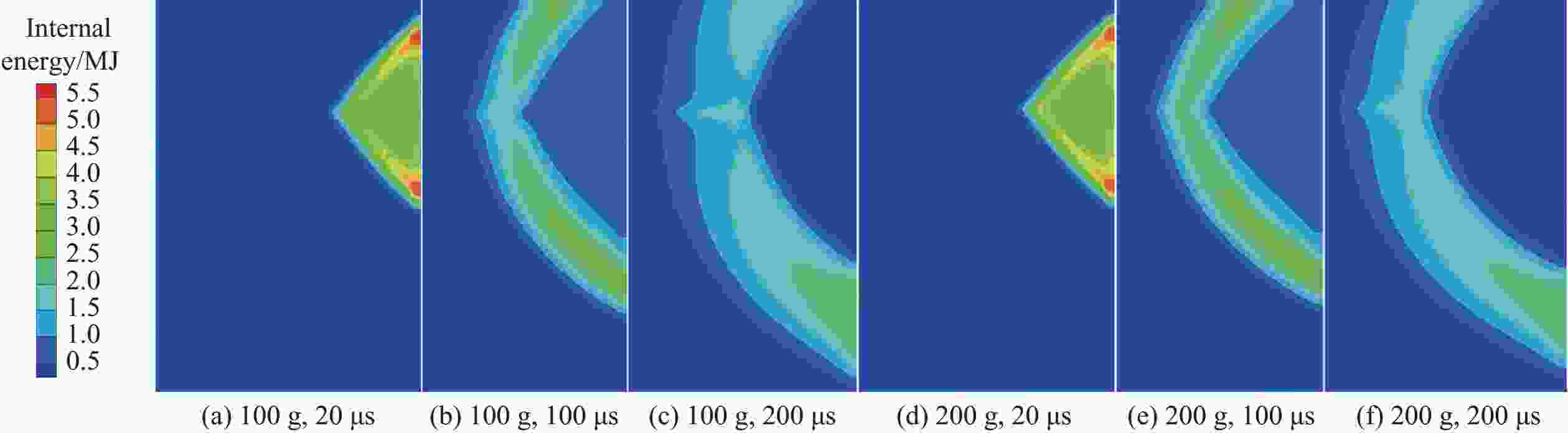 Case Charge/g Channel Distance/m 1 100 CH2 3.4 CH3 2.1 CH4 5.2 2 100 CH2 5.0 CH3 1.5 CH4 2.0 3 100 CH2 5.0 CH3 1.5 CH4 2.0 4 200 CH2 1.5 CH3 5.0 CH4 1.5 5 200 CH2 1.5 CH3 5.0 CH4 1.5 表 2 RDX和空气的模拟参数
