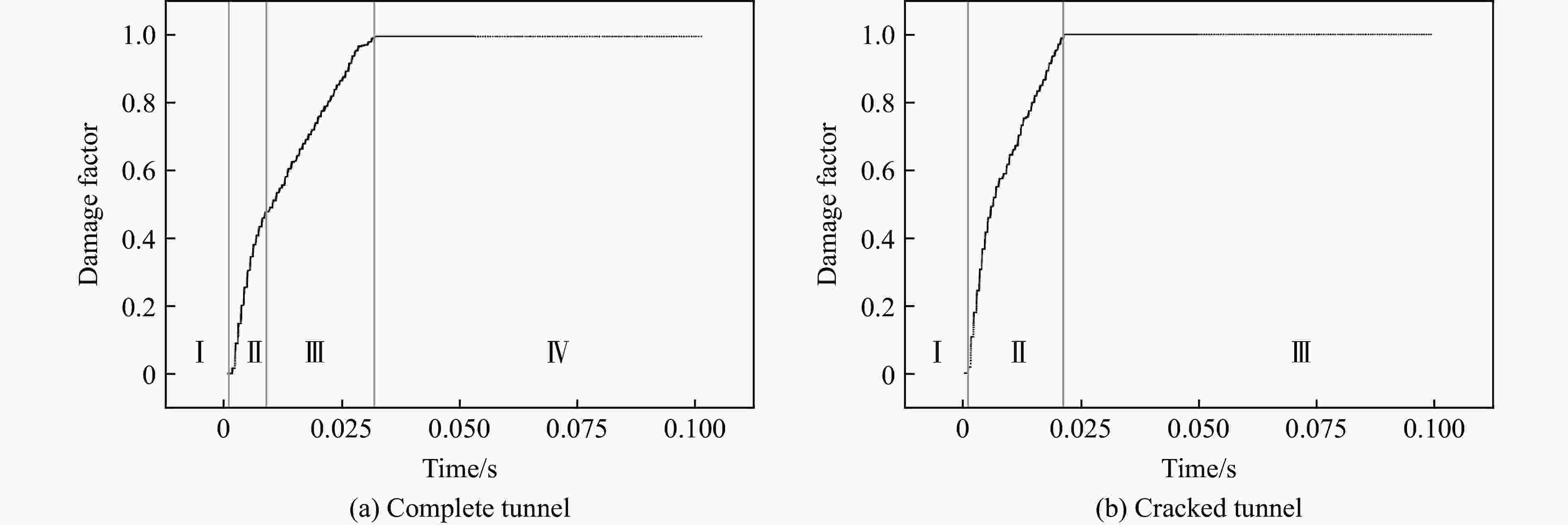 Table 5. Comparison of responses of tunnel structure and surrounding rock under explosion charge for the cases of cracked tunnel and complete tunnel