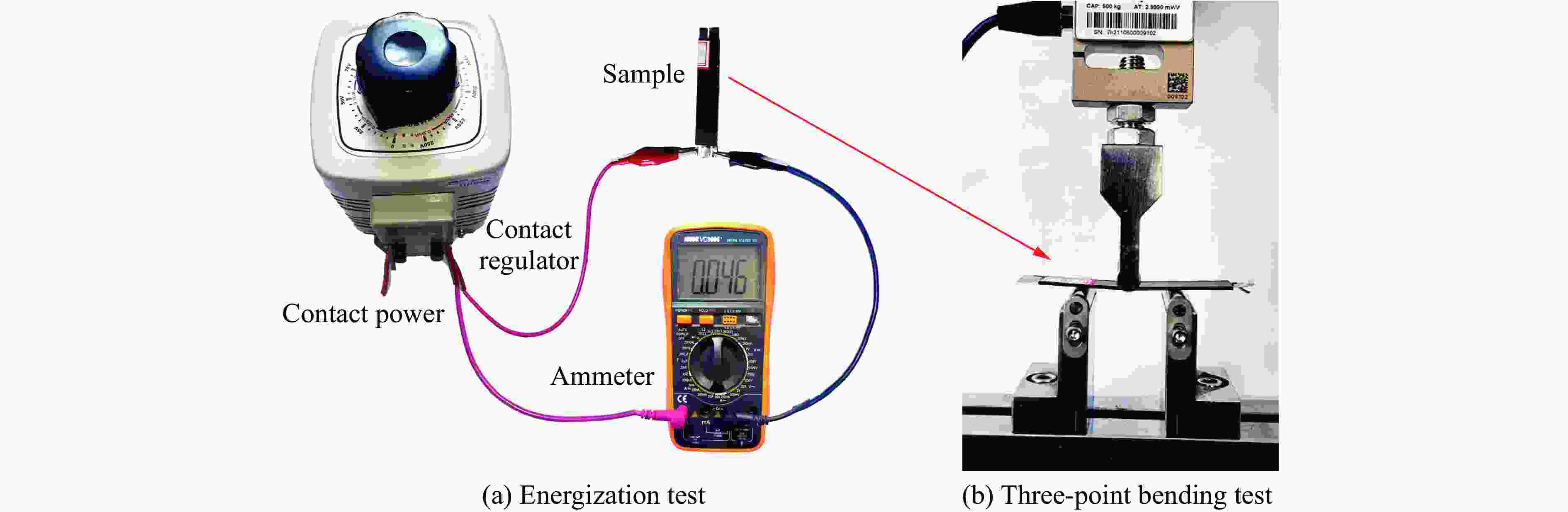 Material Tensile strength/MPa Density/(g·cm−3) Thickness/mm HTS 1130 7.26 0.02 CFRP 1800 1.80 0.20 表 2 三点弯曲样品通电方案