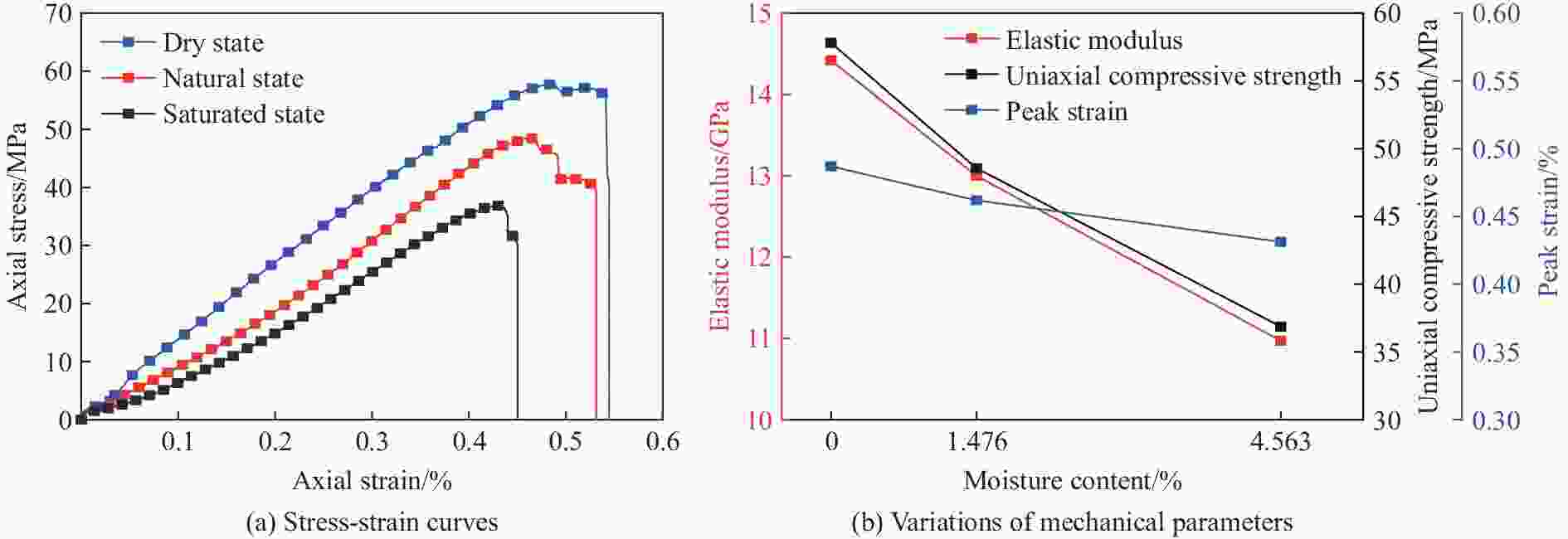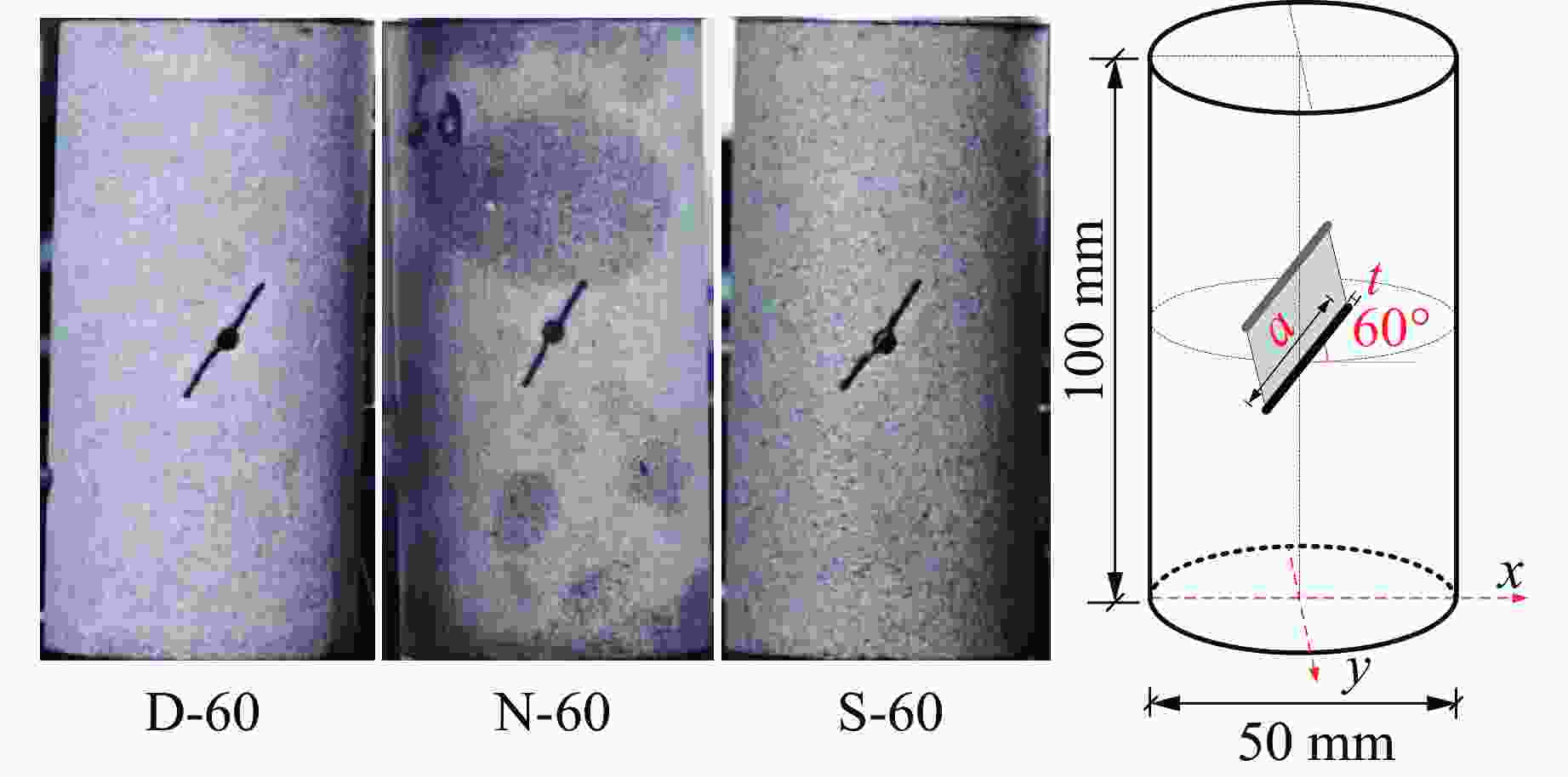 Sample State Diameter/mm Height/mm Mass/g w/% D-60 Dry 49.83 99.94 459.26 0 N-60 Natural 49.79 99.46 466.14 1.476 S-60 Saturated 49.71 100.03 481.22 4.563 -