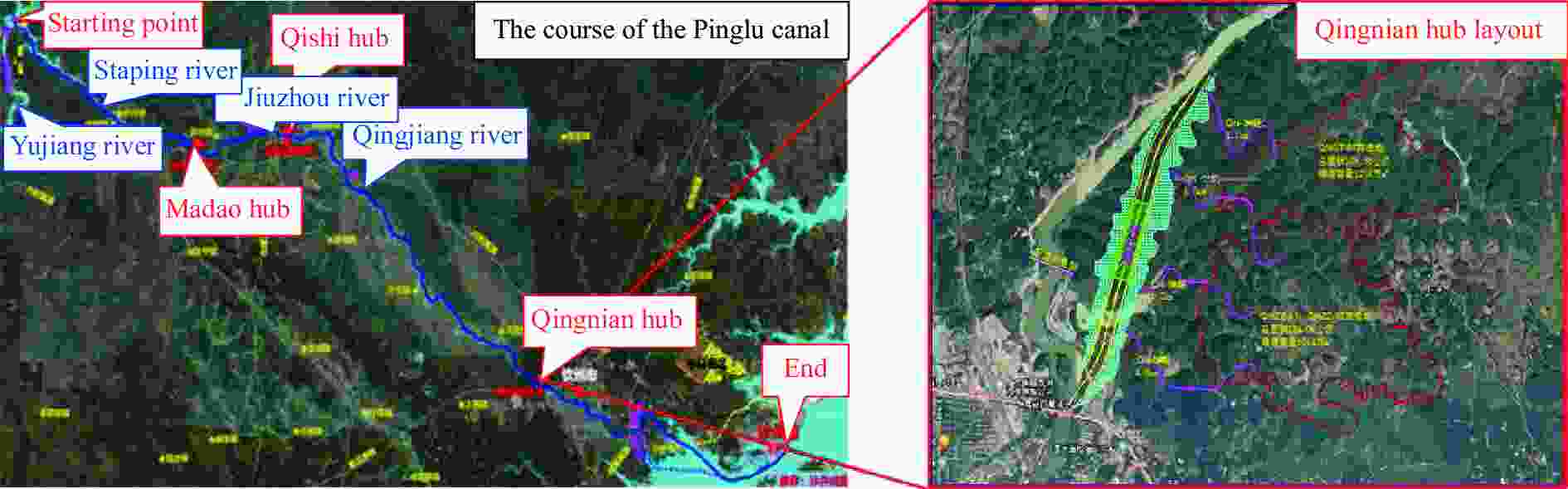 Figure  1.  Course of the Pinglu canal and Qingnian hub layout