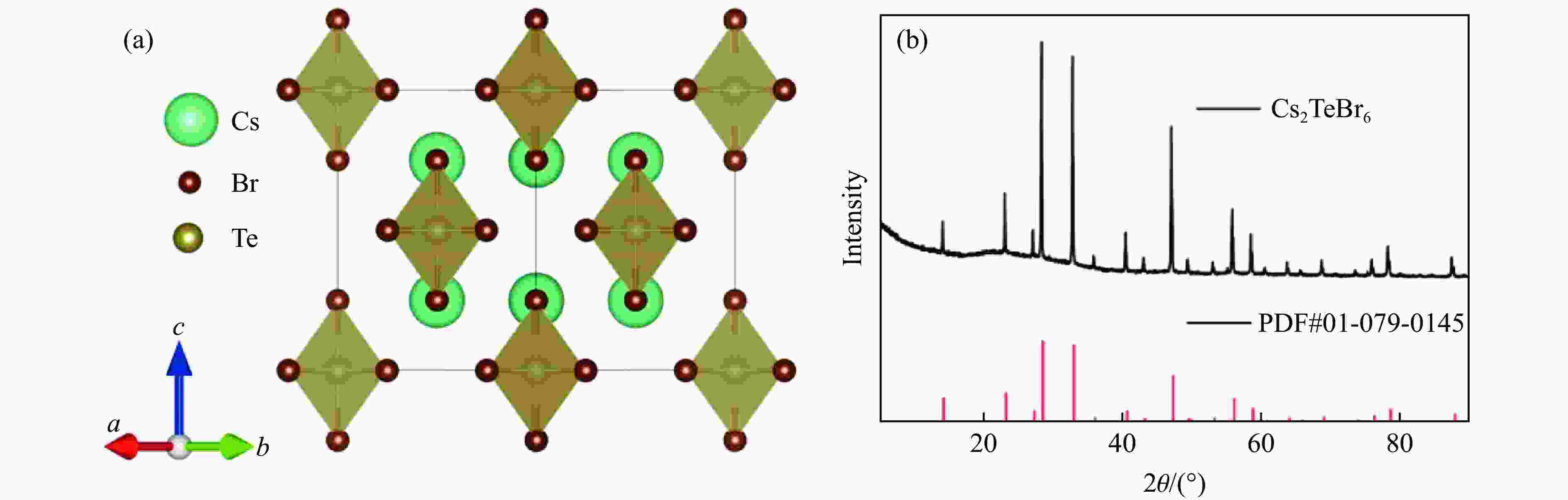 • 图  Cs2TeBr6在常压下的晶体结构(a)及其粉末XRD数据与PDF标准卡片的对比 (b)