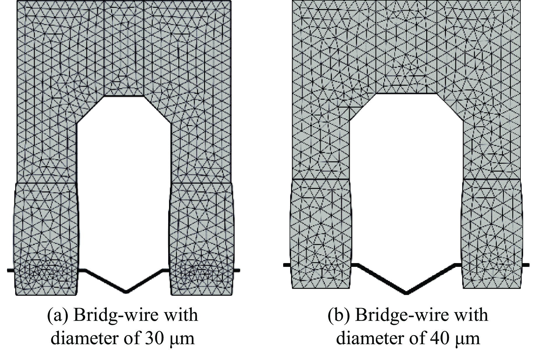 为了研究点火电阻发火过程中温度的动态变化,解决储能电容-点火电阻体系的匹配性问题,通过电热实验、红外温度测量和数值模拟方法,对不同电容放电电压下点火电阻的电压-电流变化和温度变化进行测量,并结合未熔断样品的表面情况,确定点火电阻的临界熔断电压,得出点火电阻的电特性规律和温度变化规律。结果表明:在相同电压下,桥膜式直线型点火电阻的熔断时间最短;相同阻值下,桥膜式点火电阻的熔断时间和升温时间比桥丝式更短,能达到的最高温度也更高。数值仿真结果与实验数据吻合良好,验证了模型的准确性,同时揭示了桥丝式和桥膜式S型点火电阻在通电过程中热量易在拐角处积累并率先发生相变的规律。