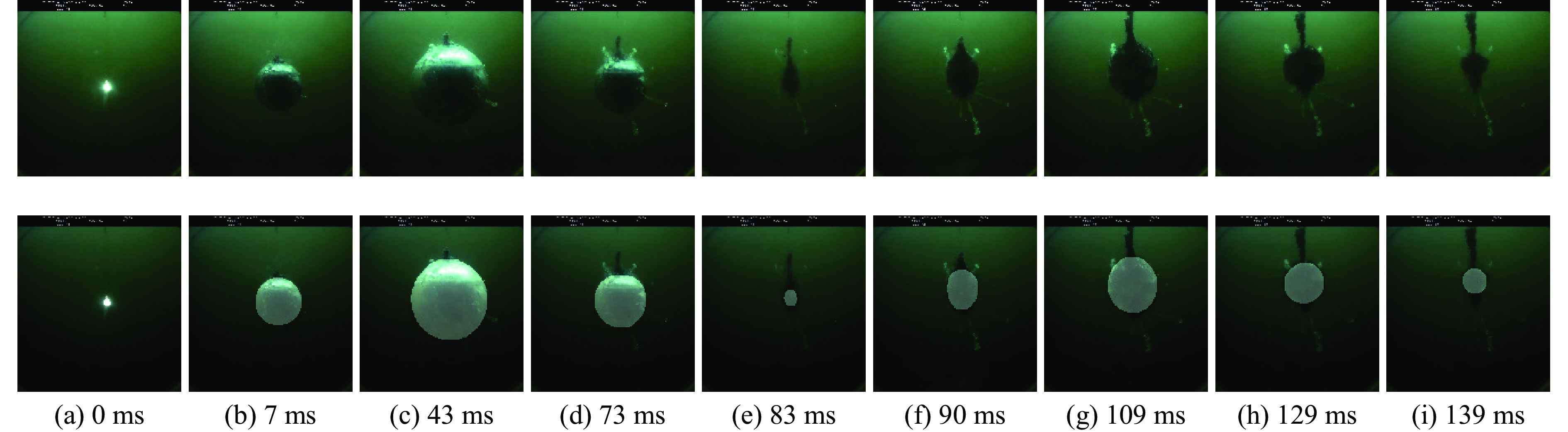 水下爆炸气泡的膨胀-收缩运动会持续多次,在此过程中将发生能量的相互转换。在爆炸水池内分别开展了20、40和60 g RS211装药的气泡运动光测试验,采用高速相机拍摄气泡多次脉动的演化过程,对图像进行智能化识别处理,得到气泡的脉动周期和最大半径。在此基础上,理论分析了气泡多次脉动过程中势能、内能的转换机制。结果表明:第2次气泡脉动相对于第1次气泡脉动的余能率为0.31;气泡内能占总能的比例为5.4%~6.6%;工程计算时,可忽略气泡内能,采用气泡势能表征气泡能。
