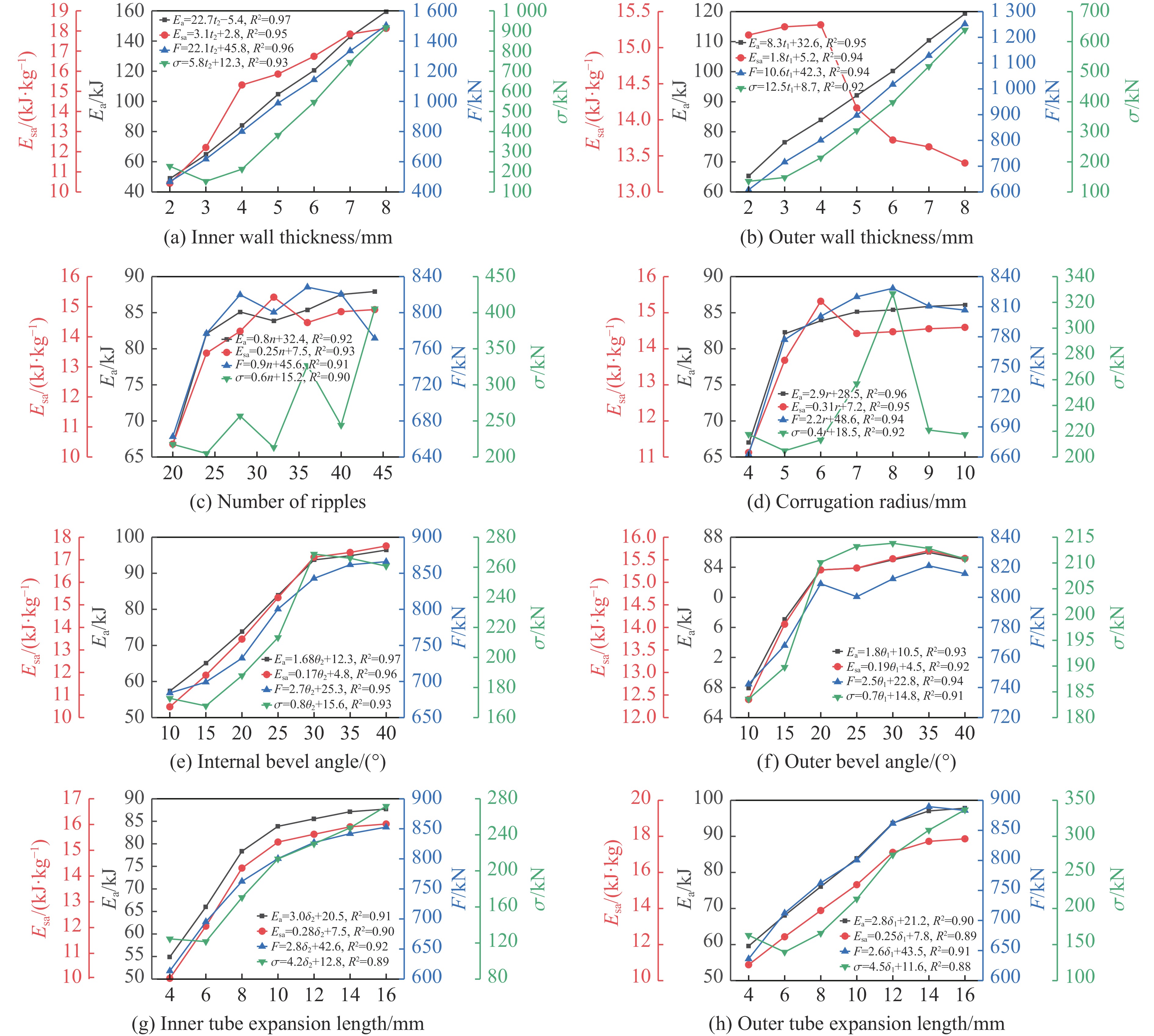 针对传统薄壁圆管与高吸能需求之间的矛盾,提出了一种内嵌不同正多边形的仿生分形多胞圆(bio-inspired fractal multi-cell circular, BFMC)管。基于生物结构启发与分形层级理论,构建了内嵌正四边形、正五边形及正六边形的BFMC管几何模型,并通过数值模拟系统研究了质量、分形维数及内嵌正多边形边数等关键参数对结构耐撞性能的影响,并与典型多胞管进行了对比分析。结果表明,在近似等质量条件下,BFMC管凭借分形层级与仿生构型能够显著提升比吸能和承载能力;其耐撞性能随质量增加而增强,随分形维数的增大呈先降后升的趋势,并随内嵌多边形边数的增加而增强,而峰值力受边数的影响较小。基于超折叠单元理论,建立了用于预测BFMC管平均压缩力的理论模型,并通过数值模拟验证了其准确性与适用范围。研究结果为高比吸能薄壁结构的设计提供了理论依据与结构构型途径。