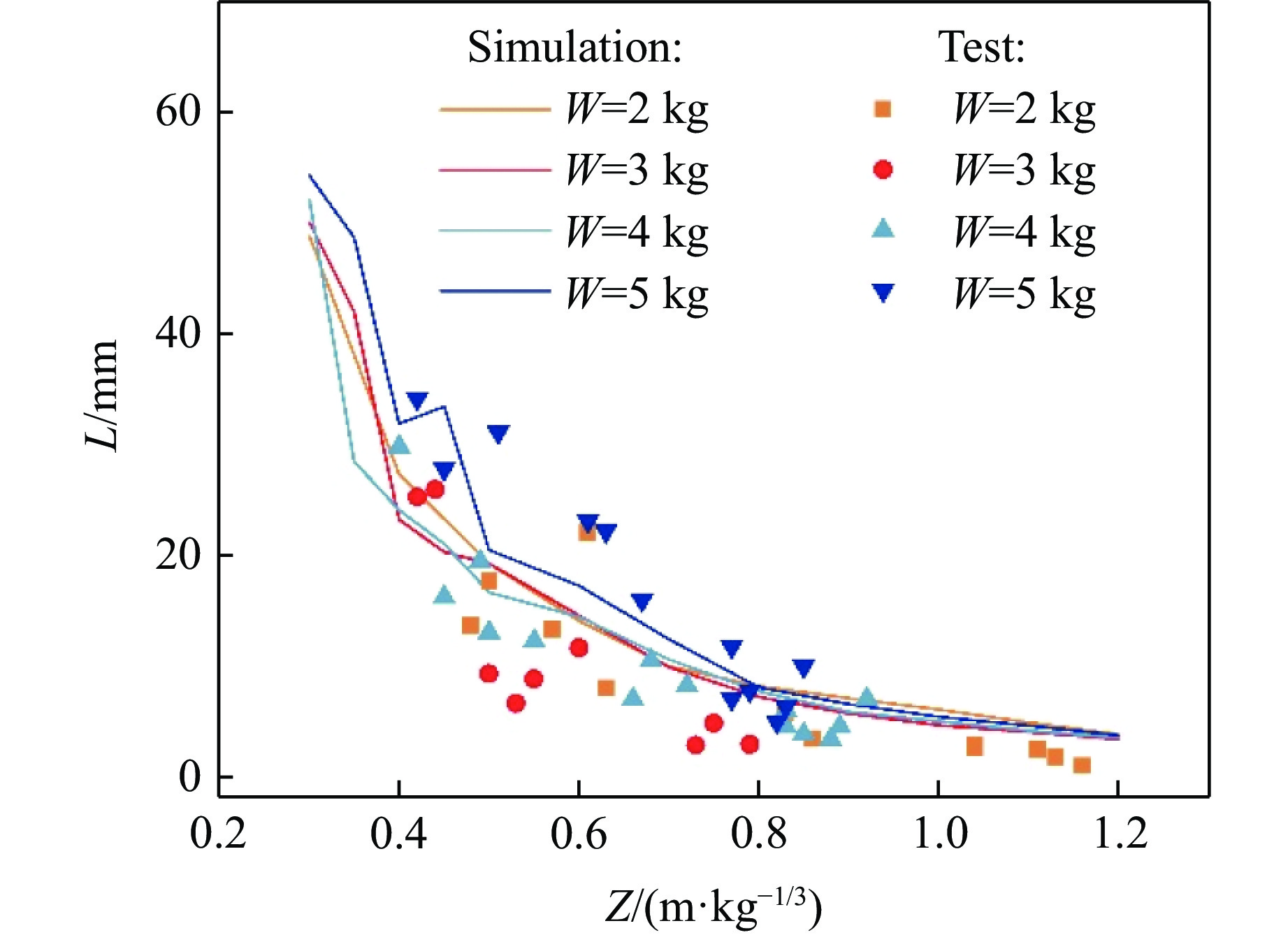 切顶卸压沿空留巷技术在煤矿开采中广泛应用,但其预裂爆破采用的多分段空气间隔装药结构,需为每段药柱配备单独雷管起爆,存在单孔雷管用量大、成本高、操作复杂及安全风险突出等问题。为解决这一工程瓶颈,提出将金属聚能射流冲击传爆技术应用于复合顶板预裂爆破,通过 LS-DYNA 数值模拟方法,系统开展药型罩结构优化、金属射流冲击传爆影响因素以及稳定传爆距离研究。结果表明:铝制药型罩的综合性能最优,当锥角为 60°、壁厚为 1 mm 时,可形成速度高、长度长且连续性良好的聚能射流;铜制药型罩因强度高、压垮能量阈值大,低威力装药条件下难以形成有效射流;铅制药型罩虽易驱动,但射流稳定性差、易断裂;当装药的长径比大于3时,有效装药量达到饱和,新增装药能量多通过径向膨胀与热耗散损失,射流的最高速度与稳定速度均趋于稳定;空气自由场中壁厚为1 mm、锥角为60°的铝制药型罩射流冲击传爆的可靠距离上限为 90 cm,超过此距离时,射流拉伸衰减导致压力不足,无法起爆乳化炸药;钢管等密闭约束可显著抑制爆轰产物径向膨胀,提升能量利用率,进而延长药型罩金属射流冲击传爆距离。