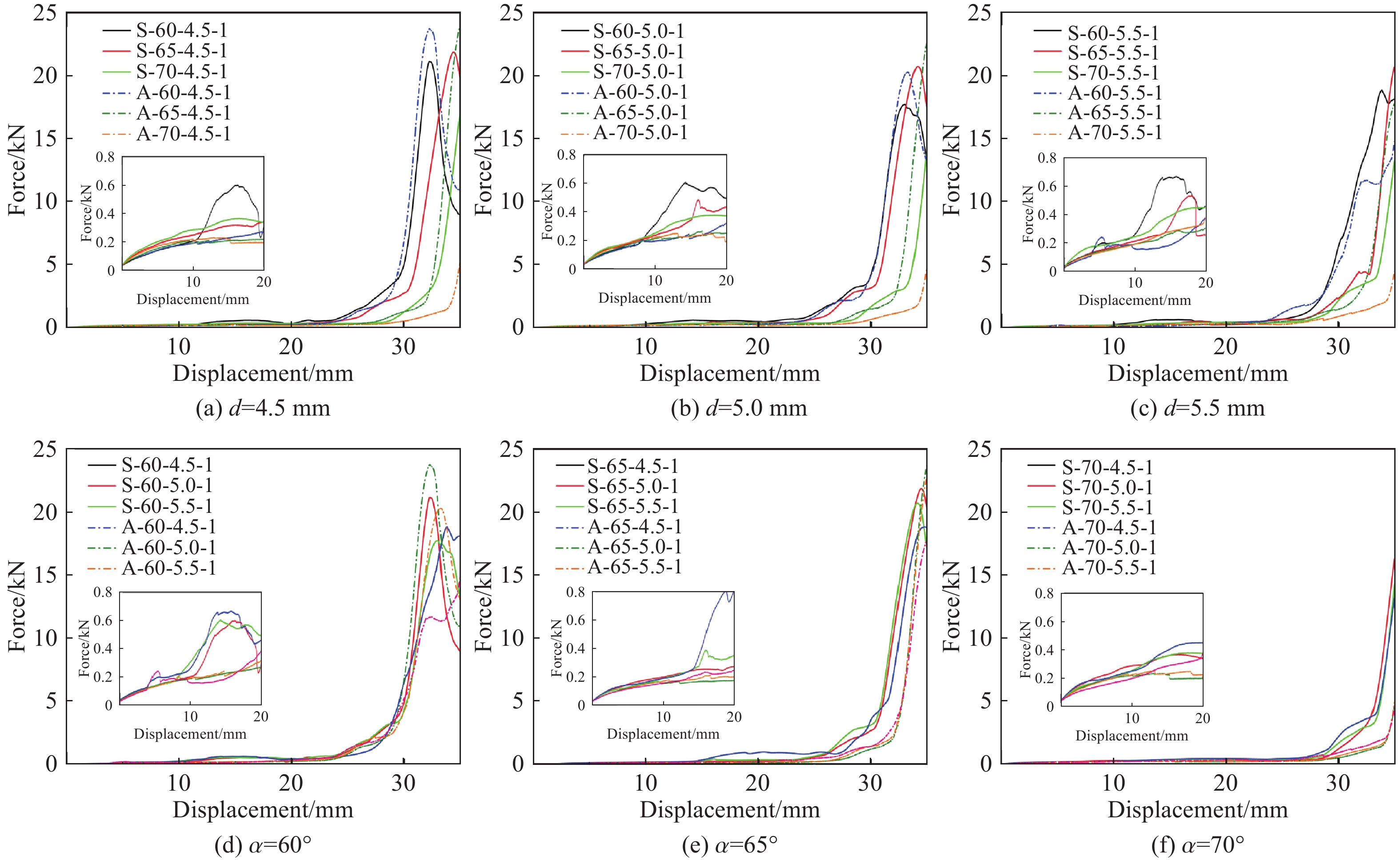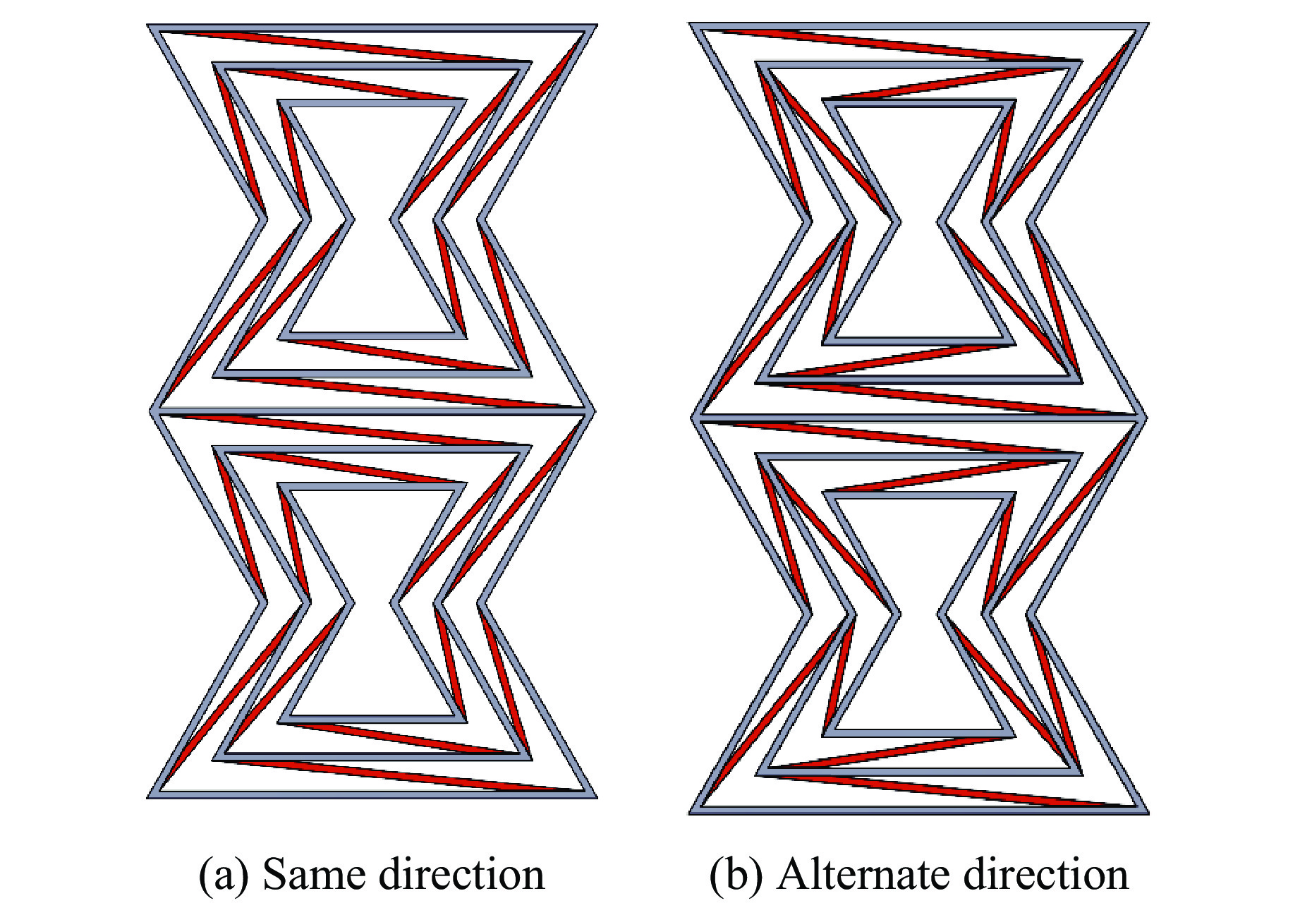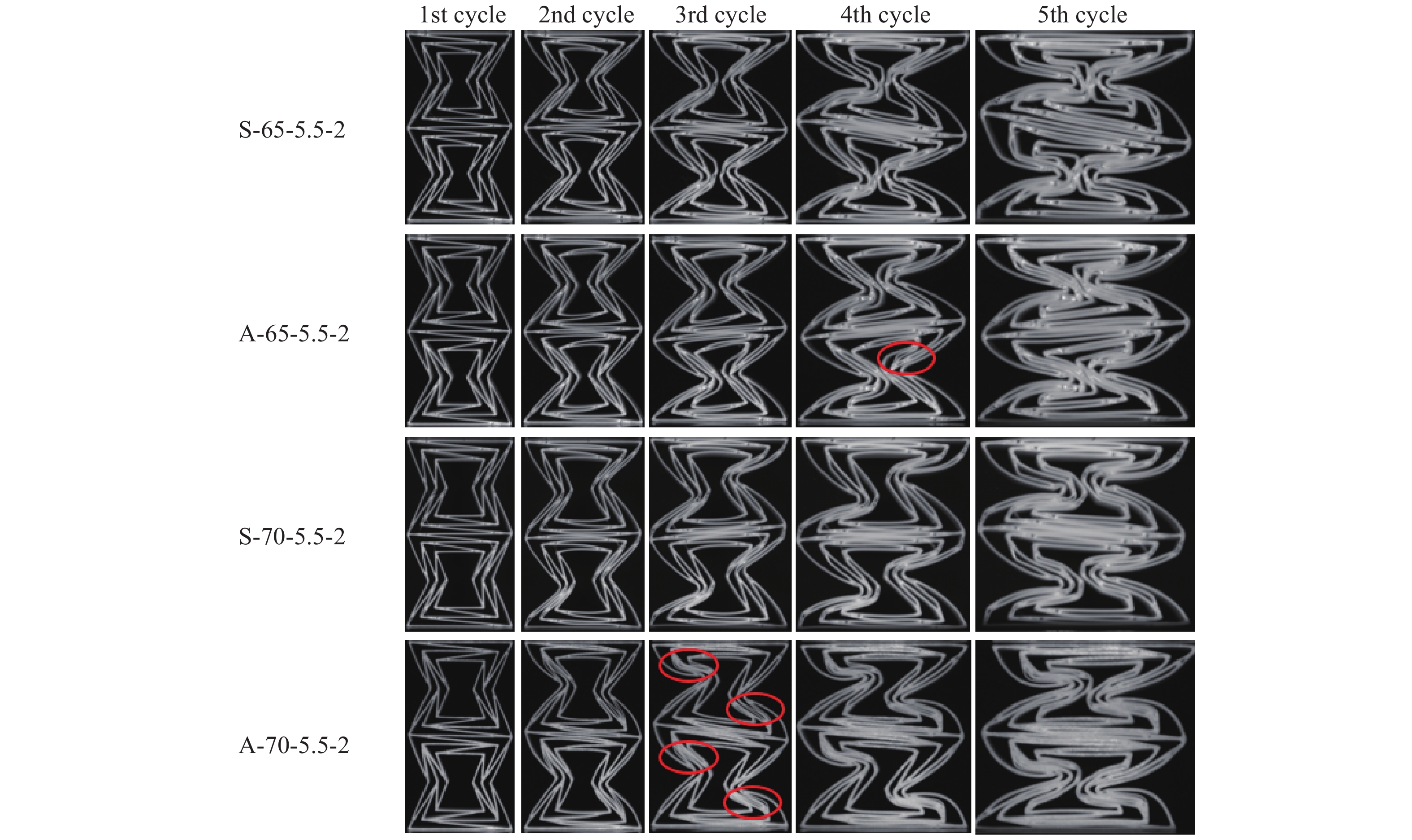 采用准静态单轴压缩实验、循环压缩实验和有限元数值模拟,对不同角度、间距和连接方式的多层嵌套内凹六边形单胞结构及其串联结构的变形行为和吸能特性进行分析。结果表明:多层嵌套结构多发生剪切变形,应力小且多集中在斜杆连接处;角度更大、间距更小的交替方式连接的单胞结构拥有更长的平台期;负泊松比单胞结构且角度为65°的试件吸能表现更优异,且同向连接以及间距增大有助于吸能的提升;角度和间距对串联结构平台期的影响与单胞结构相同,连接方式的影响则相反;角度和间距增大、连接方式改变与吸能成正反馈;在循环压缩实验下,试件更易发生分层破坏和塑性断裂,多出现在二次循环后,并伴随应力软化和能量耗散行为,其效果随着循环次数的增加而加重。