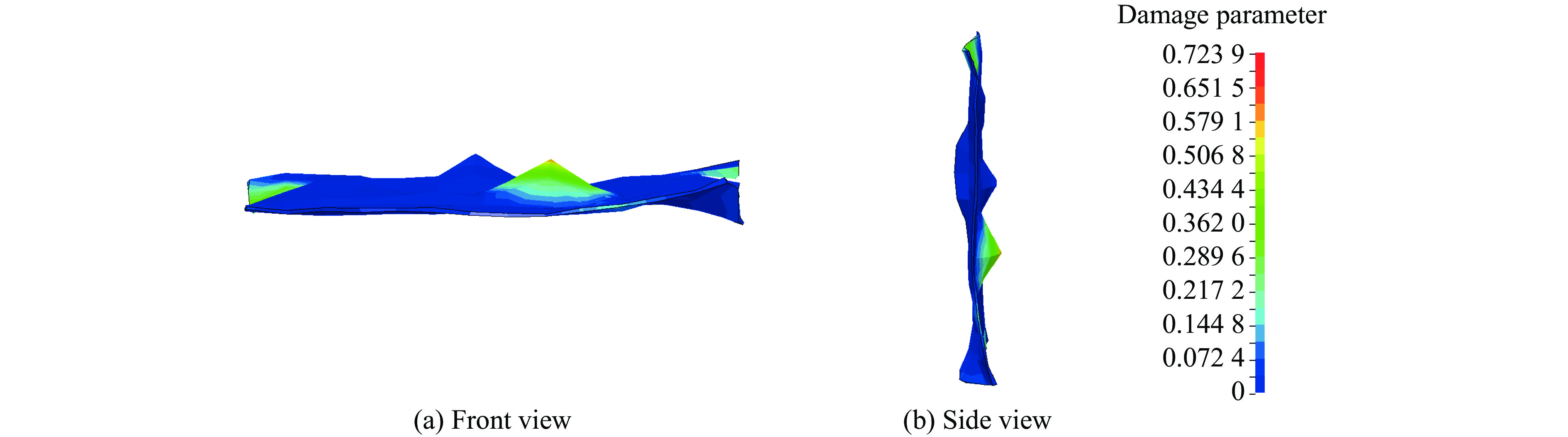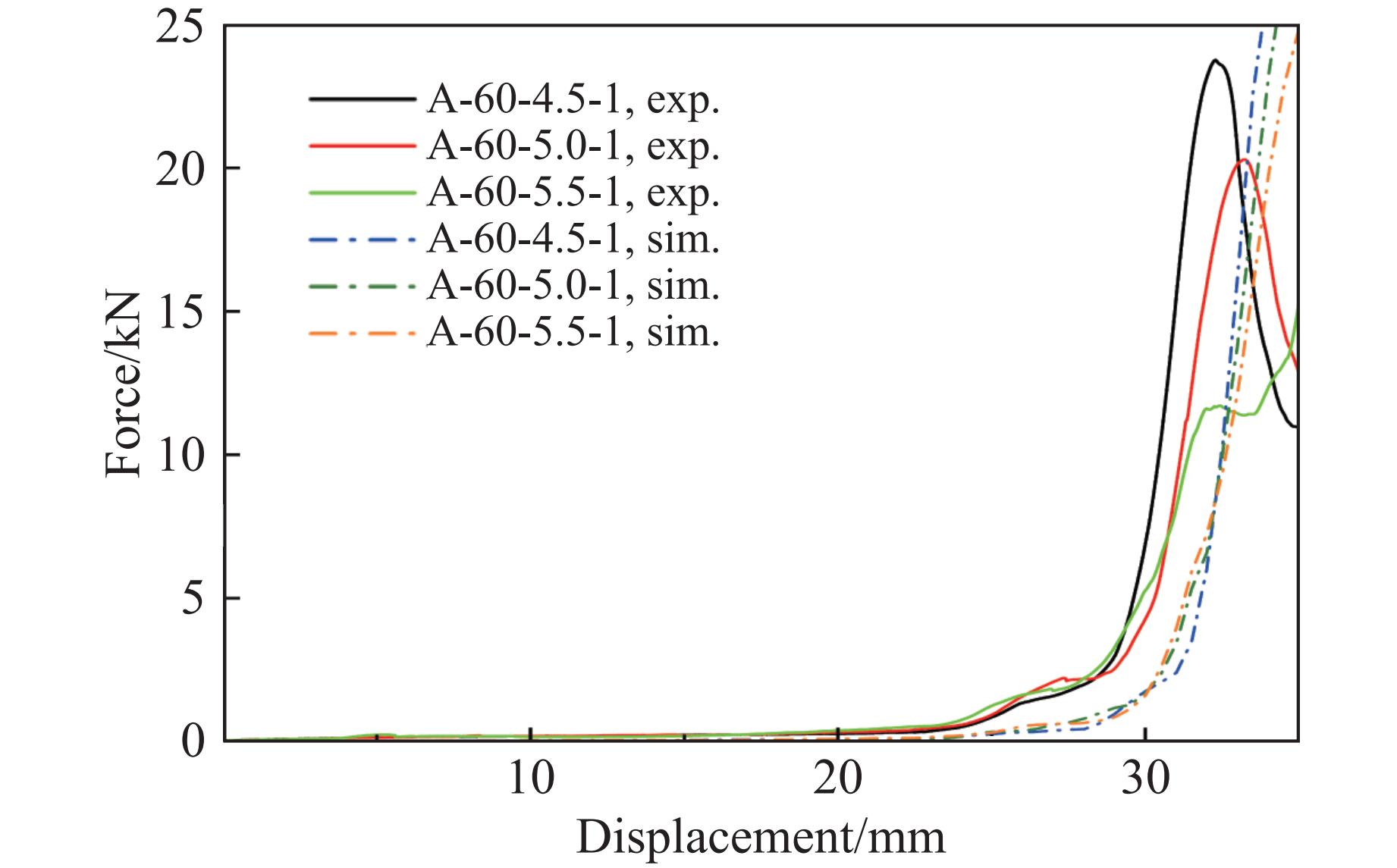 为研究泡沫铝吸能层对混凝土防爆墙抗爆性能的影响,采用LS-DYNA有限元软件模拟含泡沫铝吸能层复合防爆墙的抗爆动态响应,分析泡沫铝夹芯板结构参数、泡沫铝相对密度、爆炸载荷强度对其压缩变形规律和抗爆性能的影响。结果表明:在承受爆炸载荷作用时,复合防爆墙主要通过前面板局部弯曲变形和芯层塑性压溃变形吸收爆轰波能量;复合防爆墙的抗爆性能与芯层厚度呈正相关,与面板厚度呈负相关,但面板过薄时会因强度不足出现局部破裂失效;随着泡沫铝相对密度的增大,防爆墙的抗爆性能先显著提升后趋于平缓,当相对密度超过临界阈值后,材料波阻抗梯度降低,致使其防护效能显著削弱;7.5 kg装药、爆距为50 cm的爆炸加载条件下,芯层厚度6 cm、面板厚度0.5 cm、泡沫铝相对密度44%时能充分发挥材料的吸能特性,此时芯层的压缩比为73.3%,复合防爆墙的削波系数为77.5%;随着爆炸载荷增加,复合防爆墙的削波系数呈现“强化-平衡-失稳”的变化趋势。研究结果可为泡沫铝在抗爆防护中的应用提供参考。