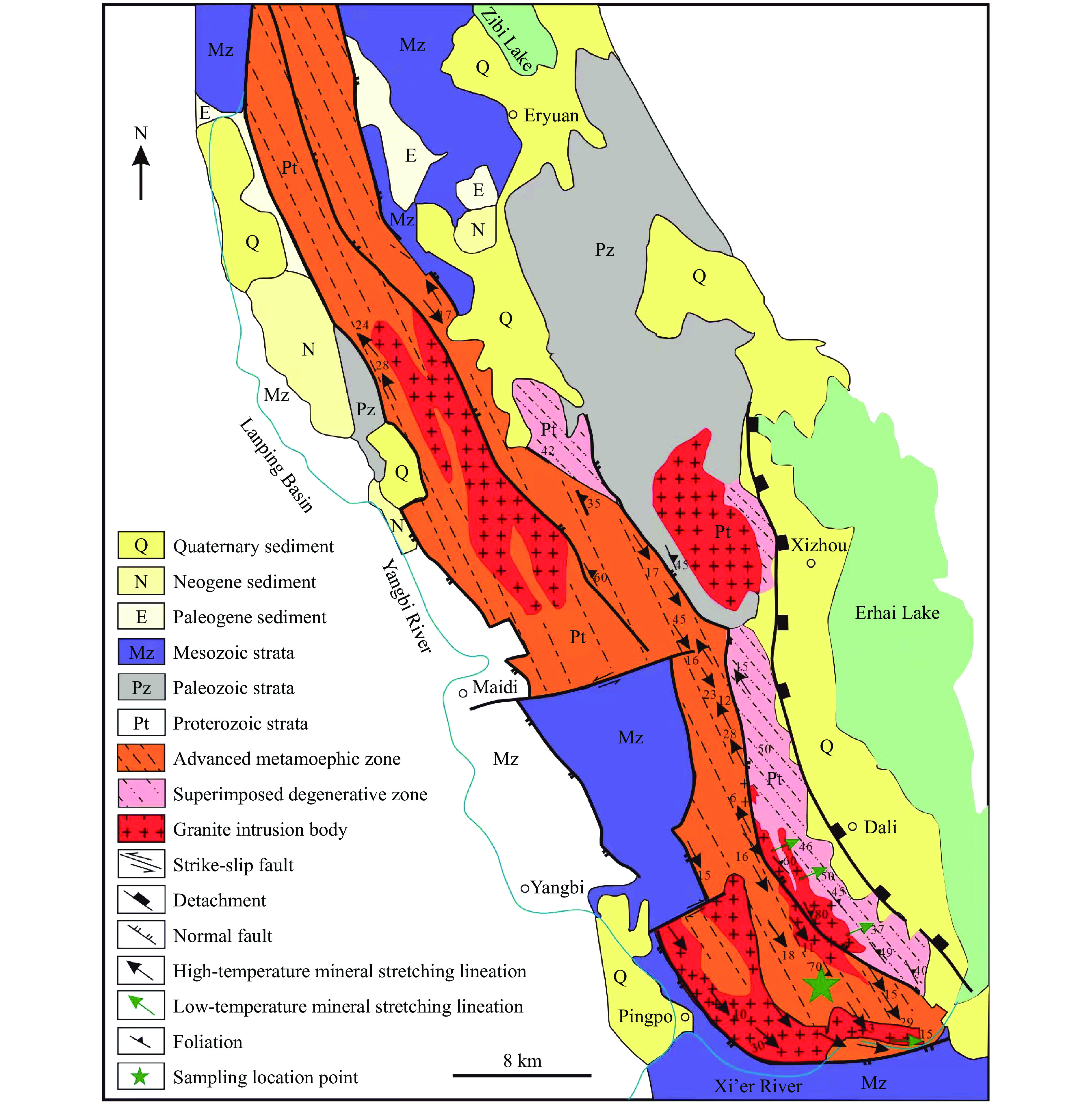 片麻岩作为大陆地壳古老基底的代表岩石类型,研究其热输运特性对于揭示岩石圈热结构及构造演化具有重要意义。采用瞬态平面热源法,首次在高温(300~1073 K)、高压(1.0~3.0 GPa)条件下同时测量青藏高原东南缘云南大理前寒武纪变质基底片麻岩的热导率和热扩散系数。实验结果表明:热导率和热扩散系数均随着温度升高而降低,揭示了片麻岩的传热机制为声子导热,其中,声子散射是导致热导率和热扩散系数降低的主要机制;温度超过 950 K 时,声子散射的饱和效应使得片麻岩的热导率和热扩散系数不再降低而趋于稳定。经验公式拟合结果表明,压力对片麻岩热输运性质有明显的促进作用,呈线性正相关。此外,根据实验结果推测大陆的中-下地壳可能具有一致的热传导能力,热导率为(2.0±0.3) W/(m·K)。基于实验数据构建的岩石圈热结构模型显示,研究区莫霍面(44 km)的温度为10301210 K,岩石圈厚度为65~95 km,呈现出明显的梯度变化。结合脆-韧性转换带温度-深度关系,限定了该区域强震震源深度在11~23 km区间,为青藏高原东南缘构造变形机制及地震危险性评估提供了新的热动力学约束。