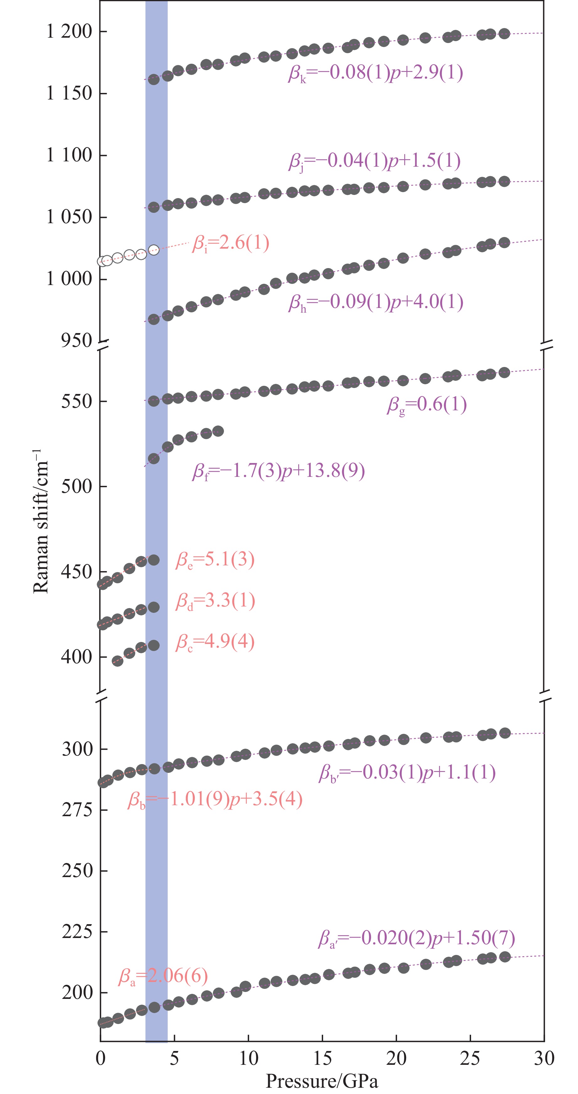 鉴于α-FePO4α-石英的拓扑同构性,采用金刚石压腔结合拉曼光谱技术,从分子尺度上原位厘定了α-FePO4在常温高压下的相变行为。在0.2~27.3 GPa压力范围内,揭示了其3个阶段的结构演化特征。在2.8~3.6 GPa区间,α-FePO4开始发生相变,并于4.6 GPa时完全转变为FePO4-Ⅱ。在宽泛的4.6~27.3 GPa区间,FePO4-Ⅱ的结构稳定/亚稳定性依赖于柔性[FeO6]八面体与刚性[PO4]四面体的协同形变。在该压力区间,结构无序度增加,振动频率漂移速率减缓,表明结构进入非线性压缩阶段。值得注意的是,在9.8~11.1 GPa临界窗口,P―O键的平均键长和部分振动峰半高宽出现不连续变化,暗示[FeO6]-[PO4]网络中存在压力诱导的非均匀应变,推测FePO4-Ⅱ开始进入亚稳定域。直到卸压至4.6 GPa,FePO4-Ⅱ的部分结构才恢复有序性,并在常压下保持亚稳态,表现出独特的结构记忆功能。研究结果系统地限定了α-FePO4的相变压力边界,阐明了正磷酸盐高压结构稳定性的内在调控机制,并预测了其未来结构演化趋势,为解析类石英矿物的高压动态响应提供了重要参考。
