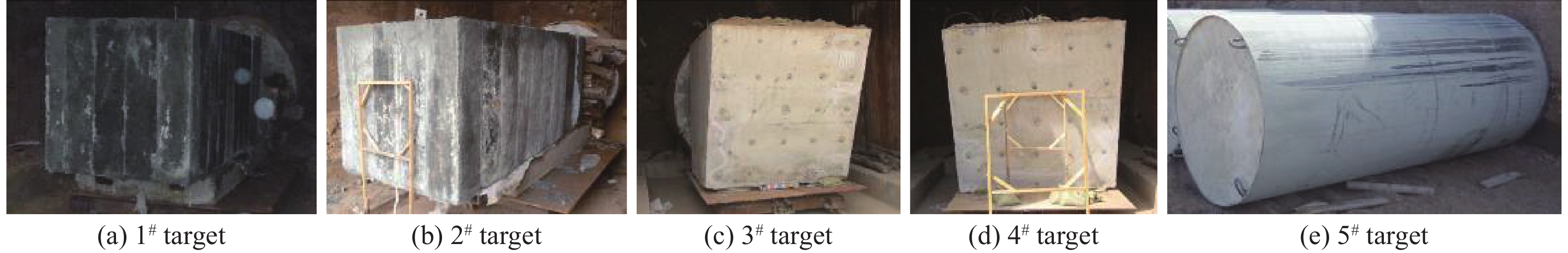 Projectile No. Velocity/(m·s–1) Depth/m Type of penetration 1# 1019 2.44 Limit perforation 2# 1195 2.80 Limit perforation 3# 1020 2.44 Limit perforation 4# 840 2.20 Limit perforation 5# 820 2.30 Semi-infinite penetration -