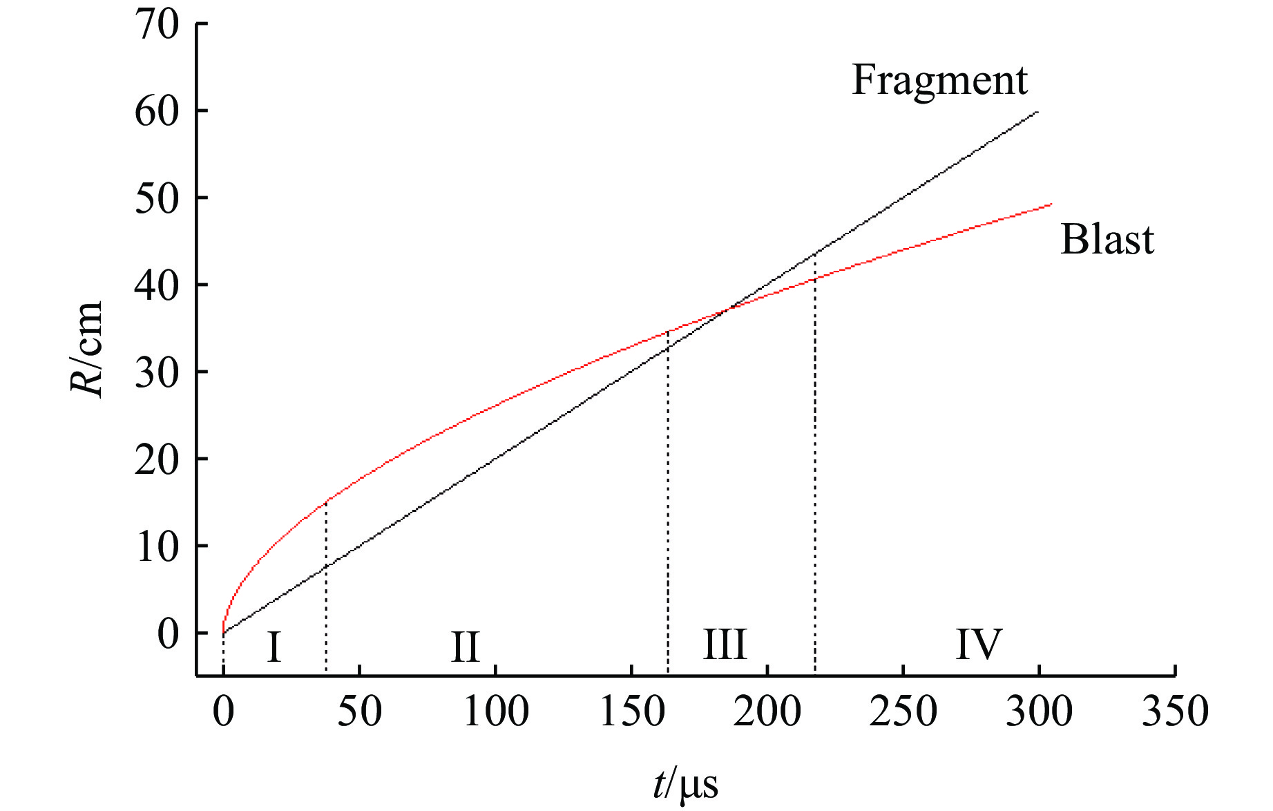 柱状装药预制破片缩比战斗部爆炸冲击波和破片的作用时序