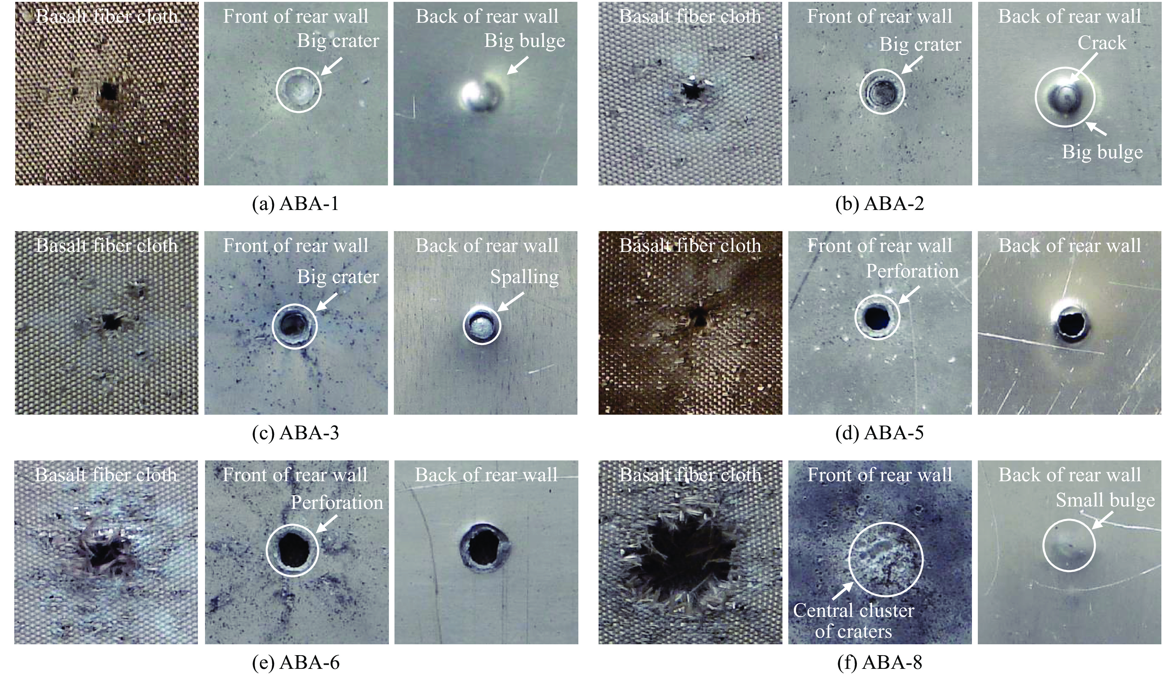 Table 1. Experimental results of rear wall damage at different impact velocities