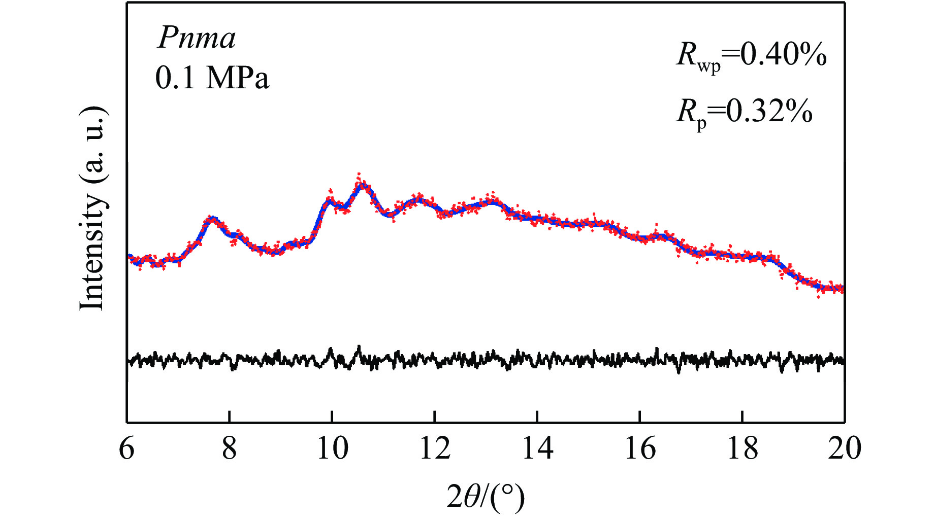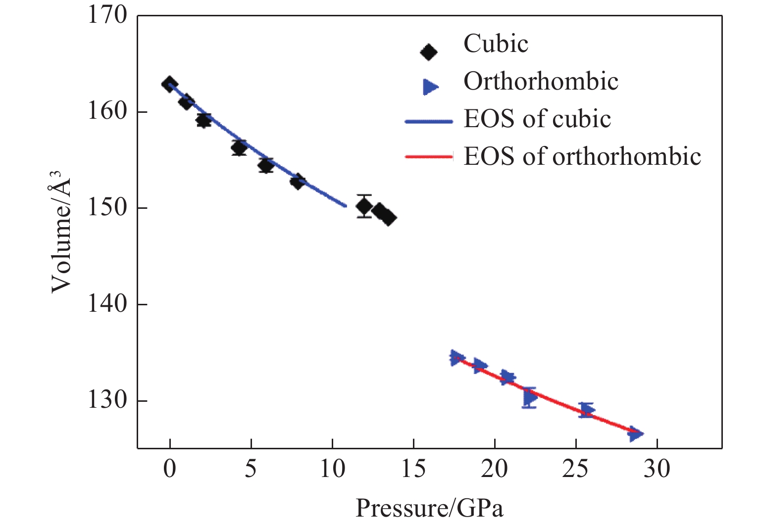 摘要: 利用原位高压同步辐射X射线衍射方法,对尺寸为11 nm的CaF2纳米晶粒进行高压结构相变和压缩特性研究。当压力为12 GPa时,观察到由萤石结构向 α-PbCl2结构转变的一次相变,该相变压力点远高于体材料,但略低于粒径更小的 CaF2 纳米晶体。相比体材料,纳米尺寸的CaF2样品的体弹模量更大,说明其更难被压缩。当压力释放至常压时,11 nm的CaF2纳米晶粒的α-PbCl2型亚稳相结构被保留下来,相变不可逆。分析了影响11 nm CaF2纳米晶粒独特高压行为的原因,判定尺寸效应为主要因素,该尺寸下较高的表面能导致结构稳定性增强和体积模量增加。Abstract: CaF2 nanocrystals with a size of 11 nm have been investigated using X-ray diffraction technique under high pressure. A phase transition from the fluorite structure to the α-PbCl2-type structure has been observed at 12 GPa, which is much higher than the value observed in the bulk CaF2 and slightly lower than the one in smaller-sized CaF2 nanocrystals. The compressibility of the CaF2 nanocrystals is discussed, an obviously higher incompressibility than the bulk CaF2 is observed. The α-PbCl2-type metastable phase is retained when the pressure is released to ambient conditions. The unique high-pressure behaviors of the 11 nm-sized CaF2 nanocrystals are attributed to defects and grain size effect. The grain size effect is considered to be the main factor influencing the high-pressure behaviors of the CaF2 nanocrystals. When the size of the CaF2 nanocrystals is as small as 11 nm, the higher surface energy leads to the enhancement of the structural stability and the increase of the bulk modulus.