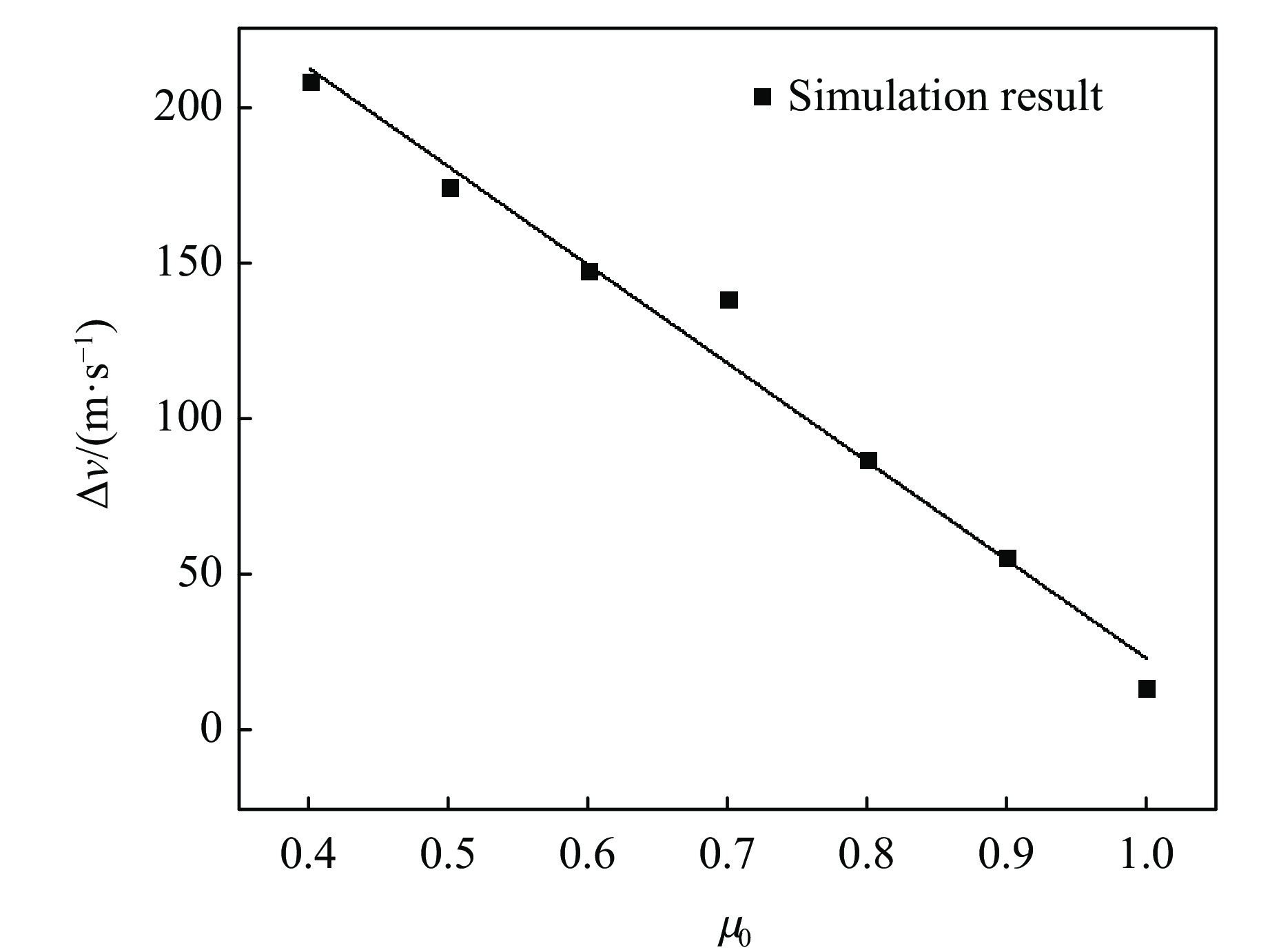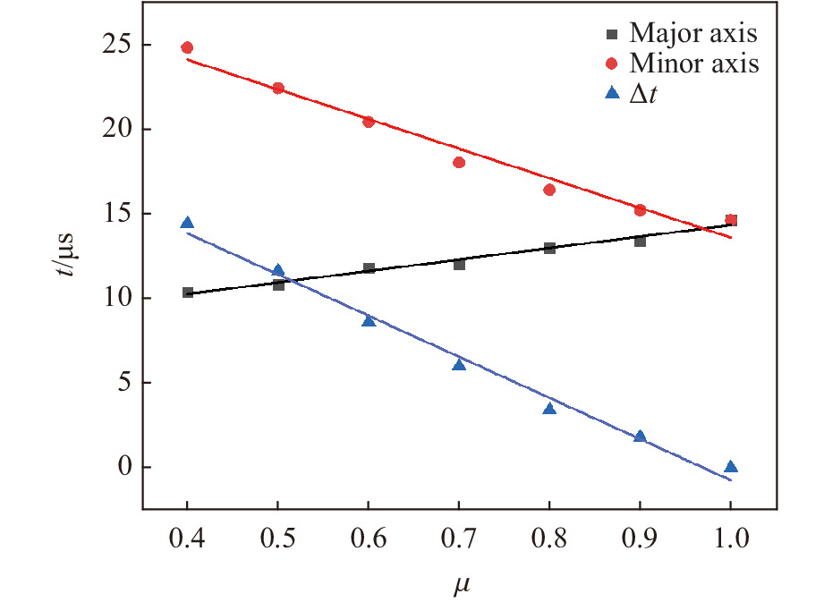 图  15  $\,\mu $0对短长轴方向破片速度差值的影响