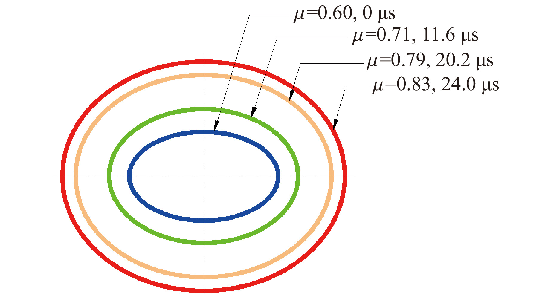 Table  4.   Model parameters of elliptical cross-section warhead with different $\,\mu $0