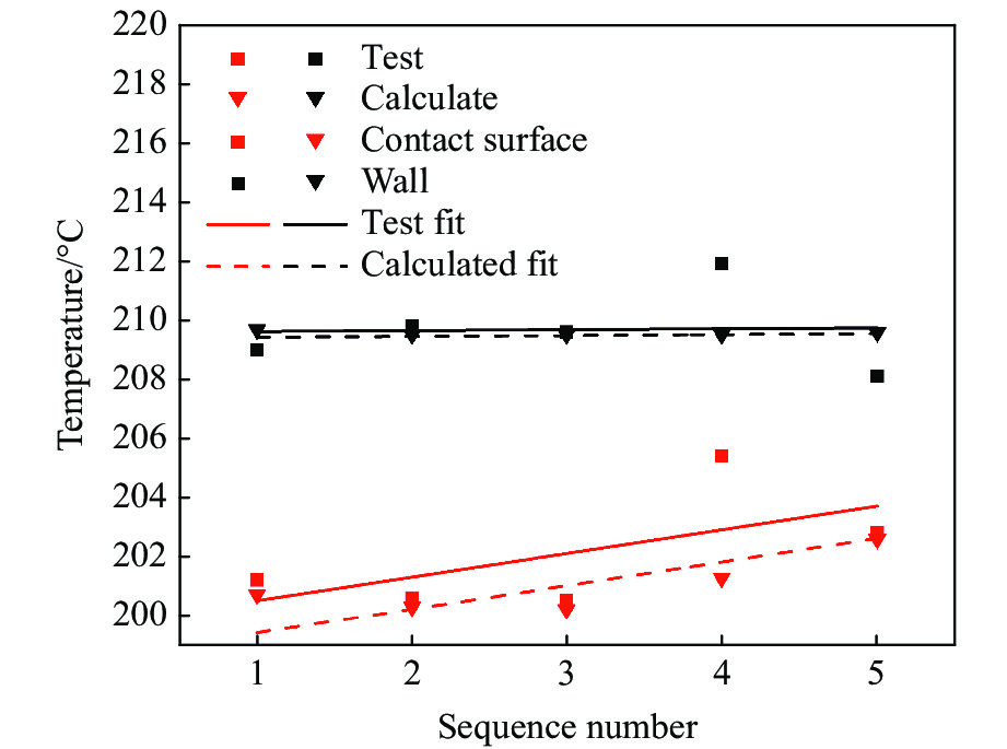 • 摘要: 为研究不同结构复合装药在慢速烤燃过程中的响应规律,分别设计了JH-2和JHB炸药的$\varnothing $19 mm单独药柱装药和$\varnothing $30 mm复合药柱装药烤燃弹,通过慢速烤燃试验分别获得了单独药柱烤燃弹在1和2 ℃·min−1升温速率、复合药柱烤燃弹在1 ℃·min−1升温速率下的温度-时间变化曲线,并结合数值模拟进一步分析了烤燃弹内部温度场的变化。研究结果表明:单独药柱装药情况下,低敏感炸药能明显降低弹药在热刺激下的响应等级;而在复合药柱装药时,烤燃弹响应点均位于外层低敏感药柱靠近壳体的环状区域,响应温度随高能药柱直径的增加而升高,响应等级随外层低敏感药柱厚度的增加而增加,复合装药由于药柱接触面存在接触热阻,烤燃弹传热受到阻滞,使得内部高能药柱极少参与反应。