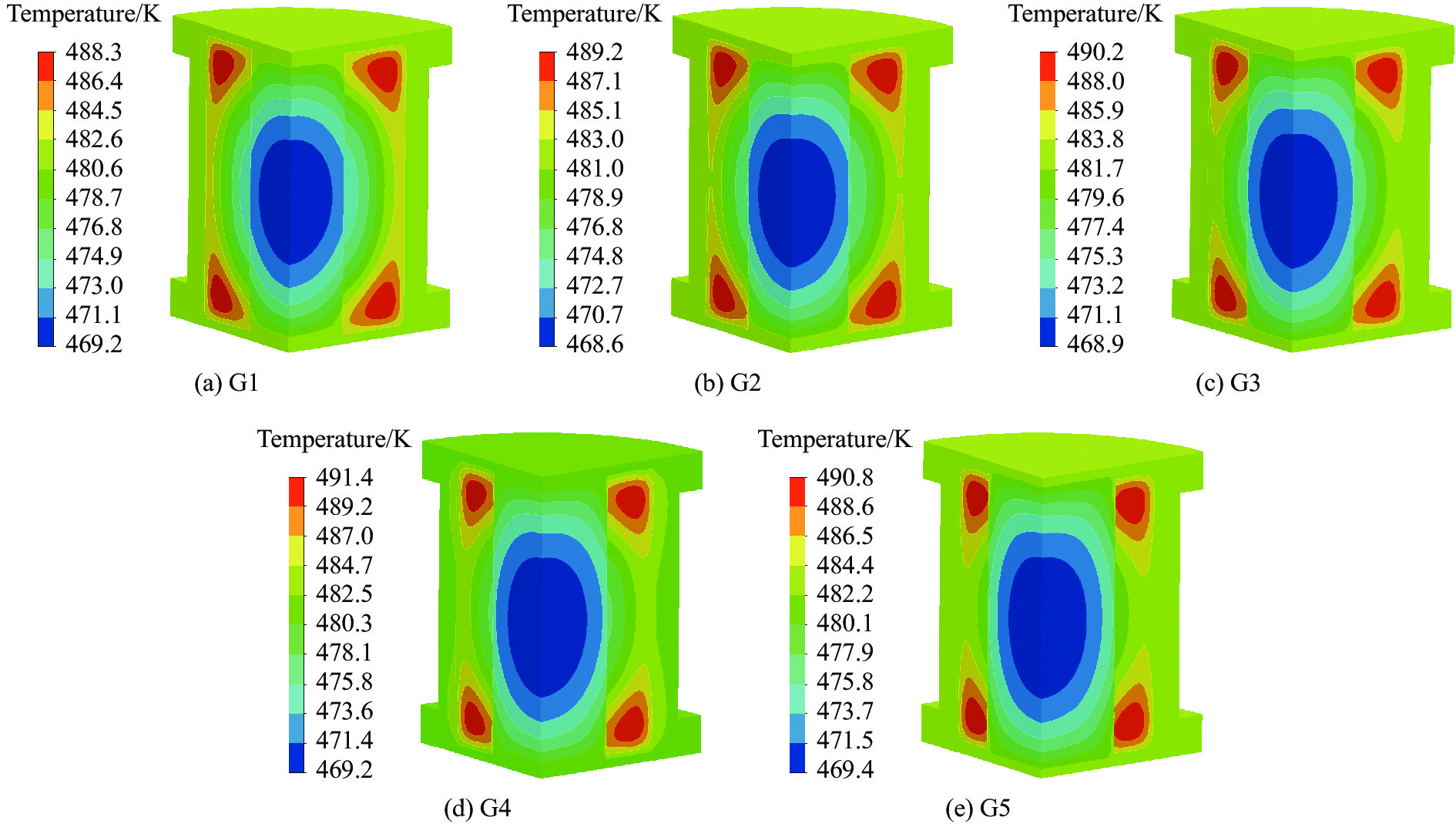 图  11  5组慢速烤燃试验响应时刻的温度-时间曲线
