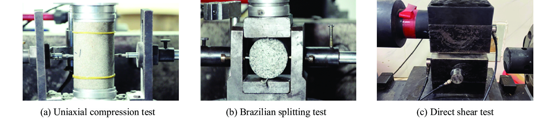 • 摘要: 为进一步揭示含水岩石破裂演化机制和裂纹扩展规律,开展了不同含水状态花岗岩的单轴压缩试验、巴西劈裂试验和直剪试验,得到了岩石在变形破坏过程中的力学、声学信息,结合声发射振铃计数和特征参数(RA)与平均频率(AF)的相对关系,厘清了含水花岗岩在不同试验条件下的微观破裂特征。结果表明:水对岩石的抗压、抗拉、抗剪强度以及弹性模量均有明显的弱化作用;不同试验条件下花岗岩的声发射信号存在明显差异,单轴压缩条件下声发射振铃计数在峰值应力点附近激增且信号活动主要出现在峰值应力点后,巴西劈裂条件下声发射振铃计数的整体波动相对较小,直剪试验条件下振铃计数激增现象比单轴压缩明显提前,呈阶梯式增长;单轴压缩条件下张拉裂纹数量呈现先减少再增加的趋势,而剪切裂纹始终在减少,直剪试验条件下剪切裂纹占主导作用,巴西劈裂条件下张拉裂纹占主导作用;不同试验条件下水对花岗岩剪切裂纹和张拉裂纹的影响机制类似,水会促进岩石内部张拉裂纹的发育而抑制剪切裂纹的发育。研究结果可为进一步探究工程围岩在不同应力场下的破裂特征提供一定的参考依据。
